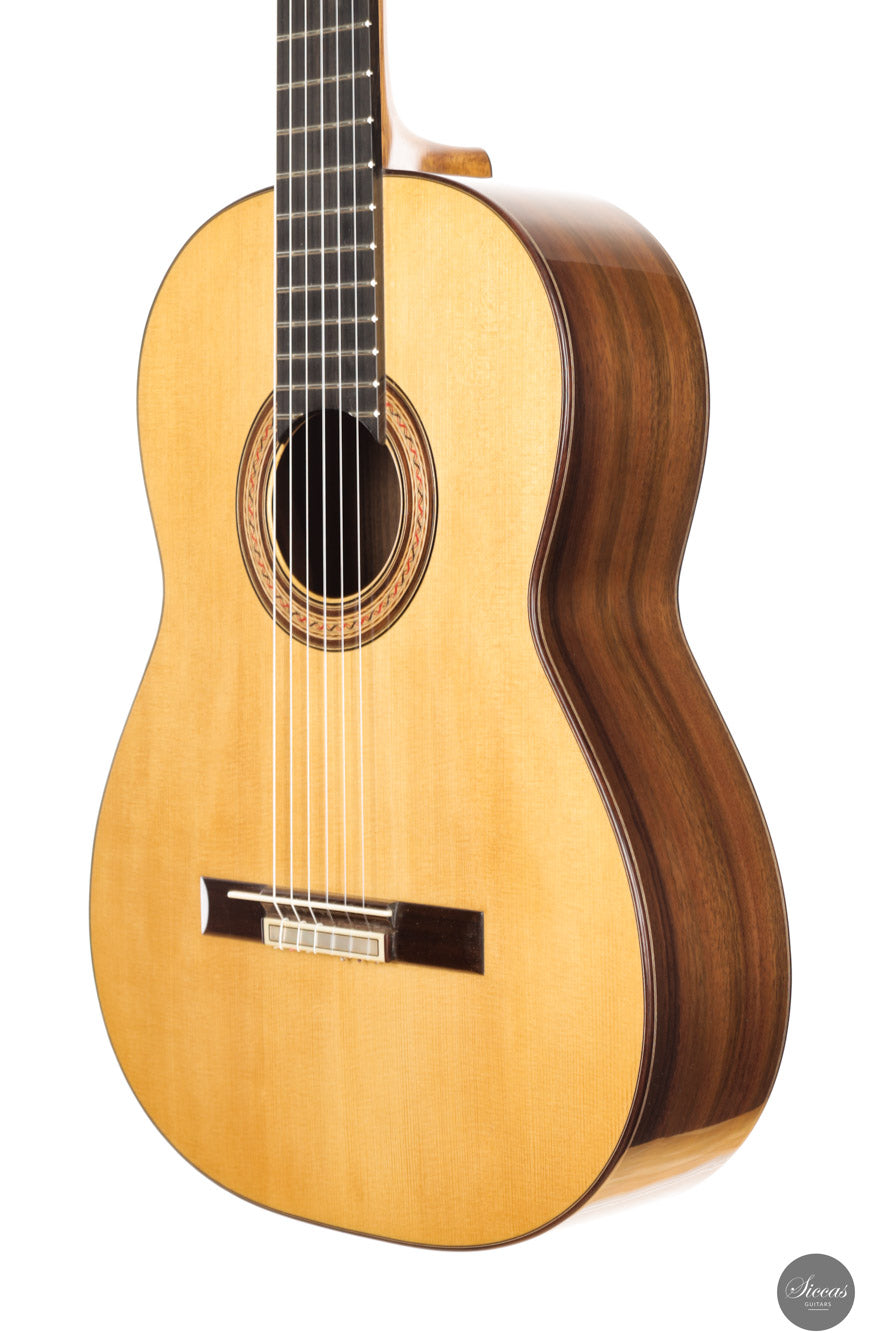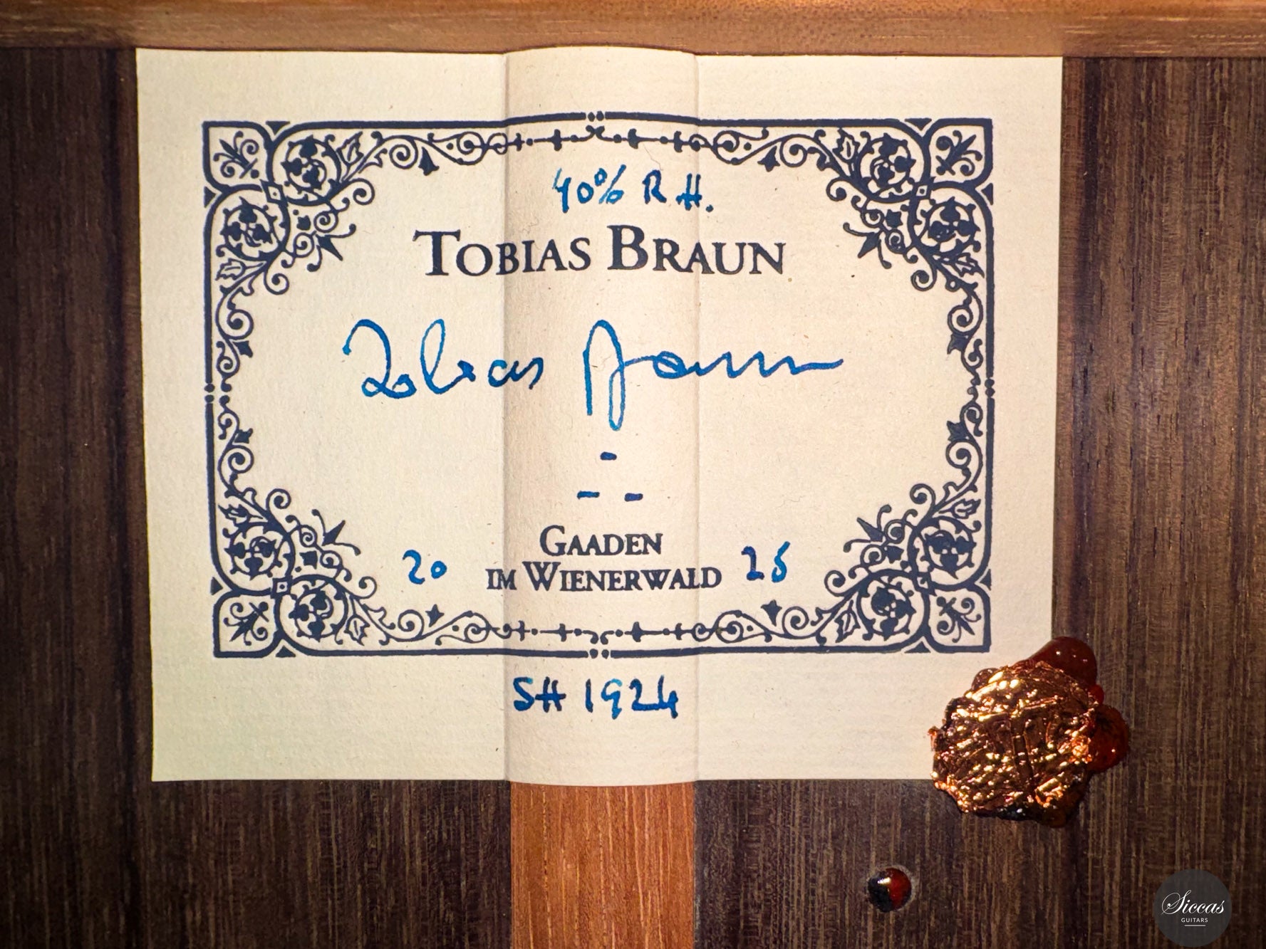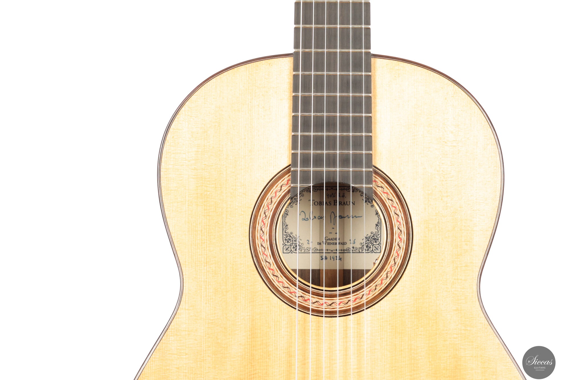 Tobias Braun, born in 1960 in Holzminden, Germany, moved with his family to Perchtoldsdorf near Vienna soon after. His journey into luthiery began in 1983 with the construction of his first concert guitar. A year later, he attended his first guitar-making course under the guidance of José Romanillos. He would go on to complete two further courses with Romanillos in 1988 and 1989, the same year he earned his master’s certificate in Vienna. Braun has since become deeply rooted in the traditional Spanish guitar-making school, often building instruments inspired by historical models by renowned luthiers such as Santos Hernandez and Manuel Ramirez.