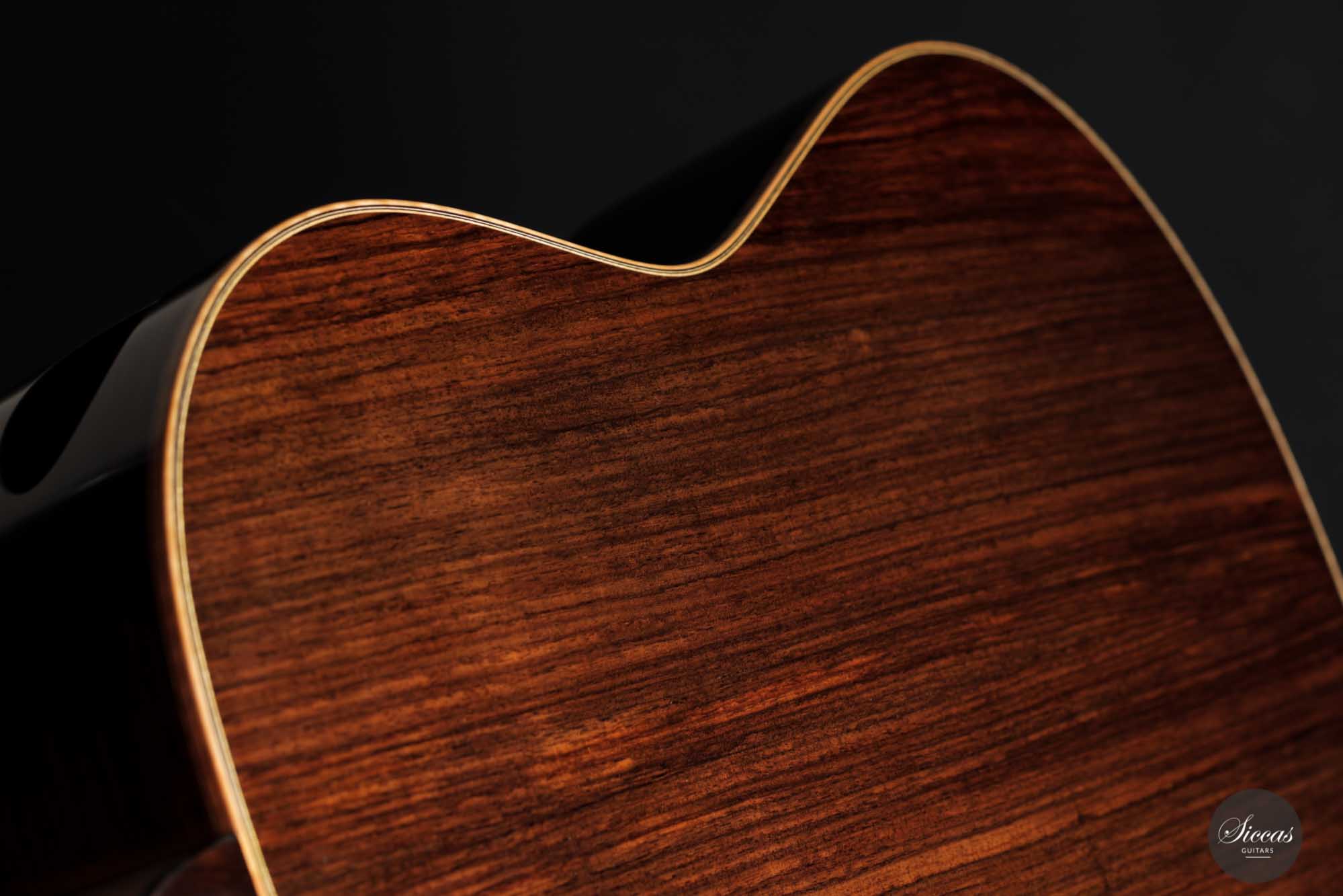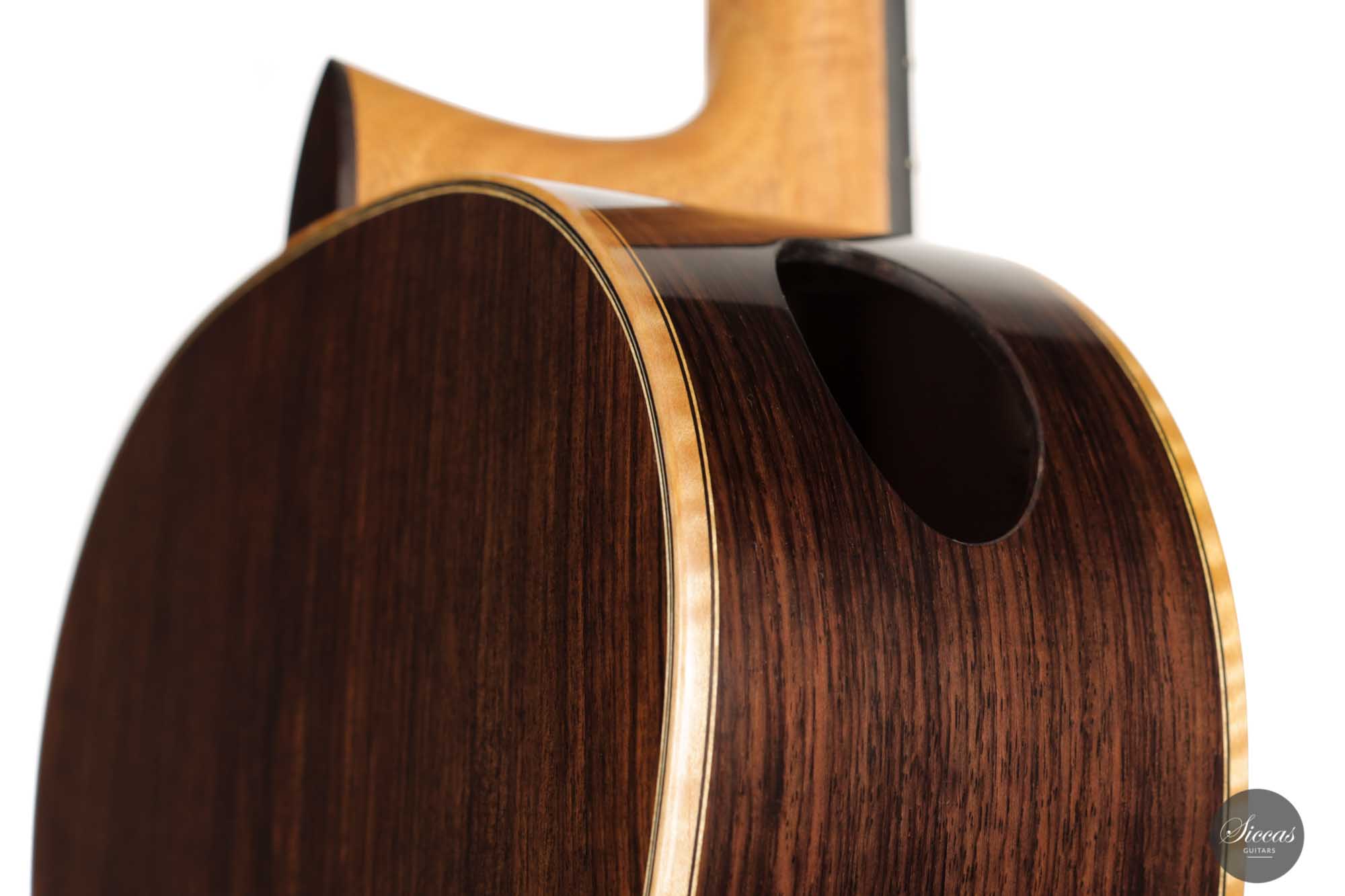 It is clearly perceptible that Toby has taken great care regarding thickness, density, and stiffness in the selection of woods when making this instrument. The result is a superbly powerful guitar with a warm and rich tone that can be shaped well and responds splendidly. The side sound port gives the player very noticeable feedback and makes you feel almost wrapped up in the sound. A truly impressive instrument of outstanding quality and impressive vigor.