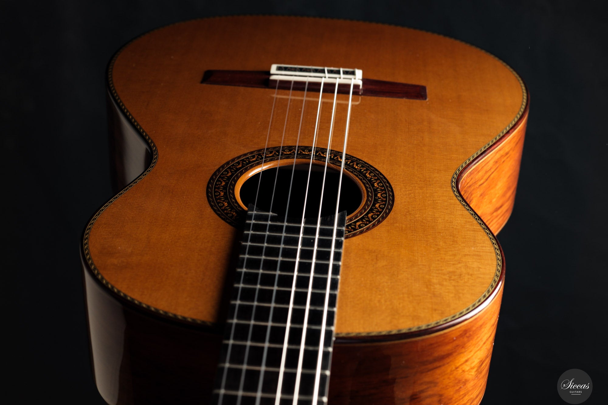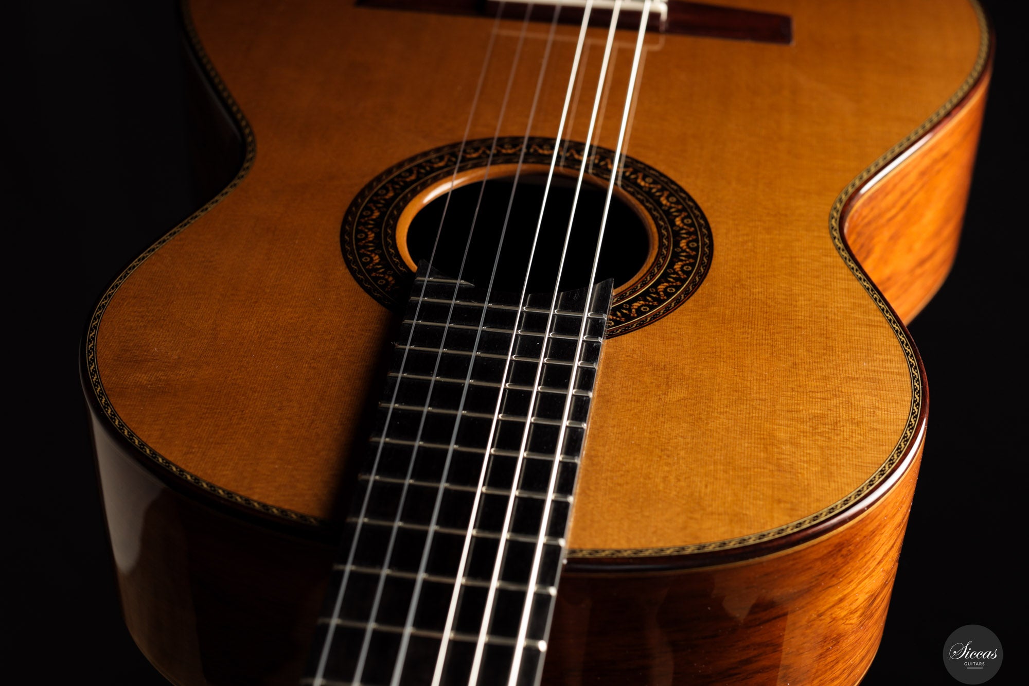 The Carrillo family has been building guitars since 1744 in Casasimarro, also called “Manchuela Conquense.” Already in the 19th century the town was known as “El pueblo de las guitarras,” the town of the guitars. Today, the seventh generation of this tradition is represented by Vicente Carrillo, who continues to craft instruments in the same location. His achievements have been recognized with the Regional Craftsmanship Award in 2009 and the National Award in 2010. Carrillo’s guitars are known for their characteristic sound, which balances resonant basses with sweet trebles, and for his innovative spirit that incorporates different construction techniques while preserving Spanish tradition. Among the many artists who play or have played Carrillo guitars are Paco de Lucía, Tomatito, J.M. Cañizares, El Niño Josele, Rafael Cañizares, Javier Limón, Keith Richards, and Josemi Carmona (Ketama).About the guitar