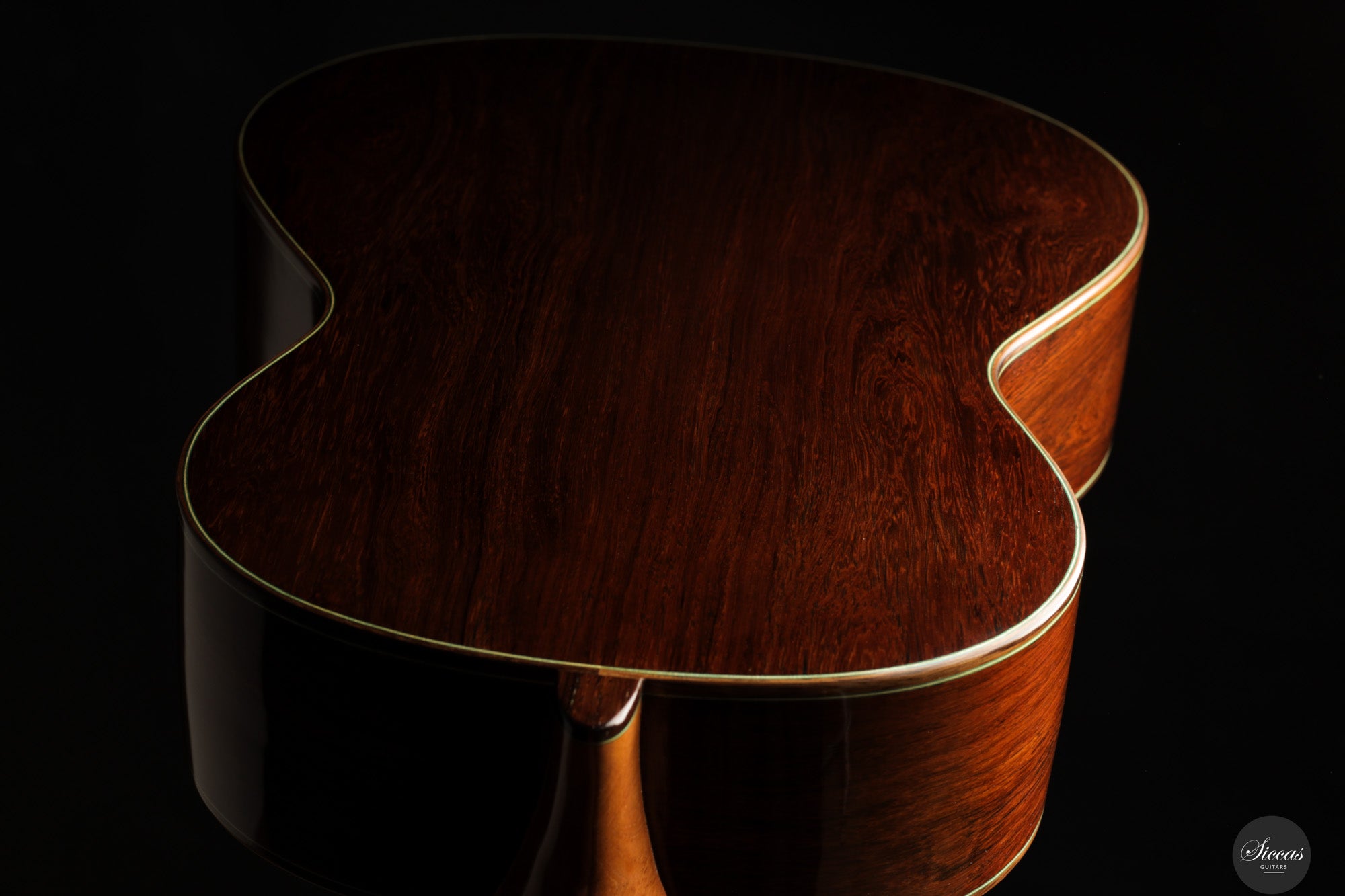 Be mindful when touching your instrument with greasy or unwashed hands: any skin contact is a small attack on the varnish. Of course, a guitar is made to be played, but taking a few precautions helps preserve its beauty: wash your hands before playing, wear long sleeves, and avoid unnecessary direct skin contact with the body of the instrument.