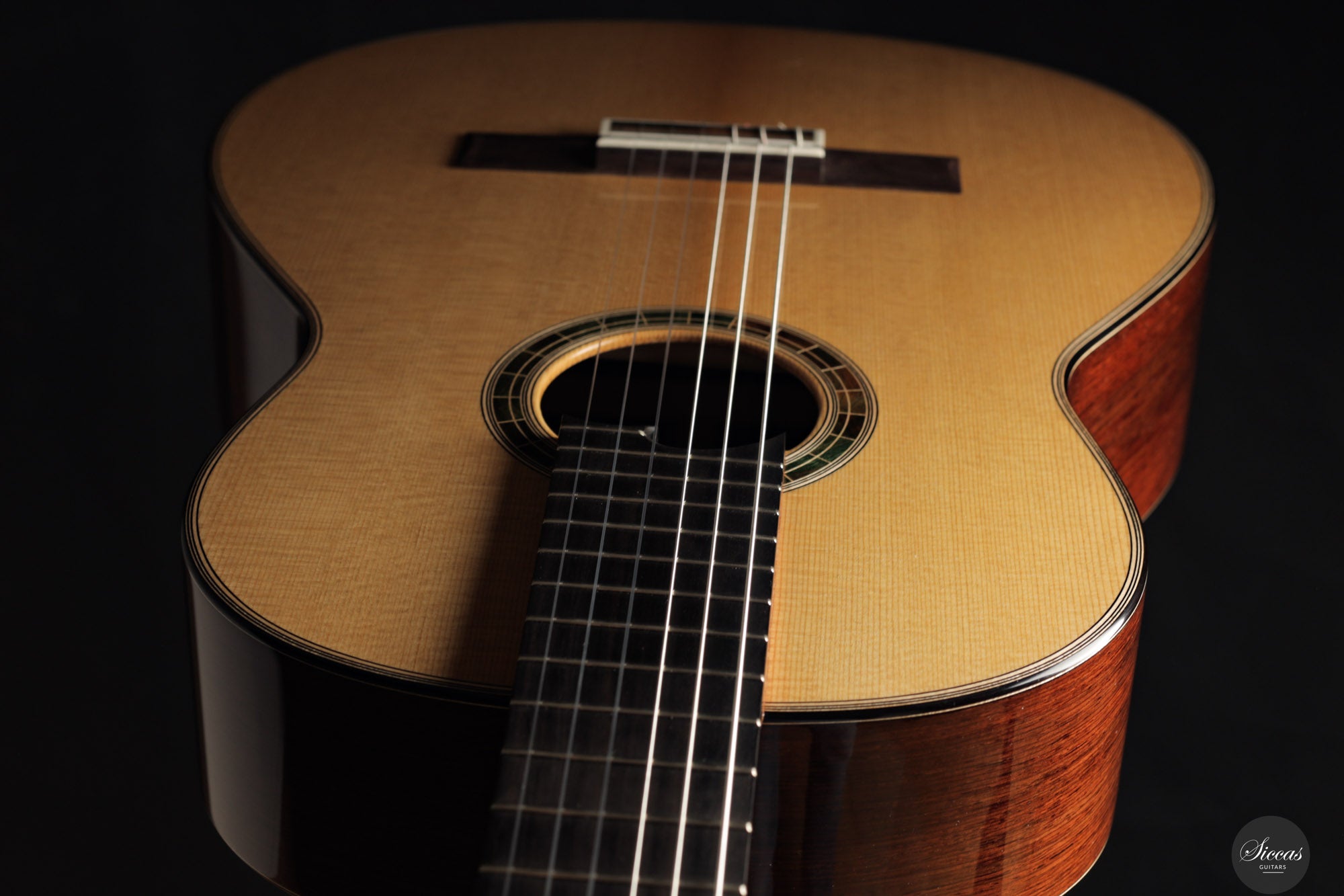 Be mindful when touching your instrument with greasy or unwashed hands: any skin contact is a small attack on the varnish. Of course, a guitar is made to be played, but taking a few precautions helps preserve its beauty: wash your hands before playing, wear long sleeves, and avoid unnecessary direct skin contact with the body of the instrument.