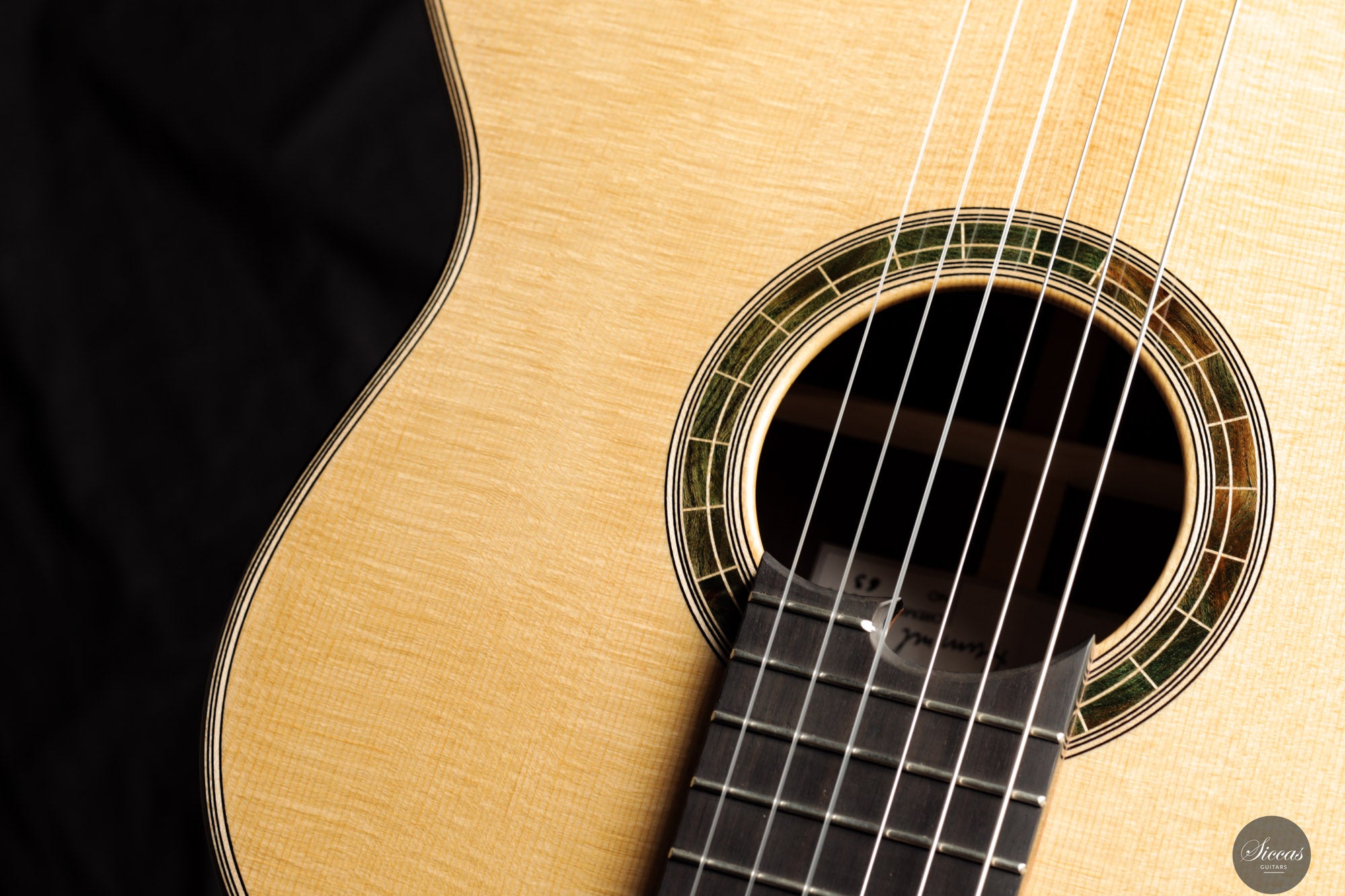 Vincent Humml is a German luthier of the younger generation. After beginning his training as a plucked instrument maker in Markneukirchen, he refined his skills through internships and specialized workshops. In 2019 he achieved the demanding title of Meister in lutherie and subsequently established his workshop in Chemnitz. Humml builds instruments that combine contemporary design with traditional tonal values. His doubletop guitars in particular demonstrate his ability to unite projection and power with refinement and elegance of tone. Careful selection of tonewoods, precision craftsmanship, and tasteful aesthetics characterize his work, which is further distinguished by the use of high-quality components such as Scheller tuners and French polish finishes.About the guitar