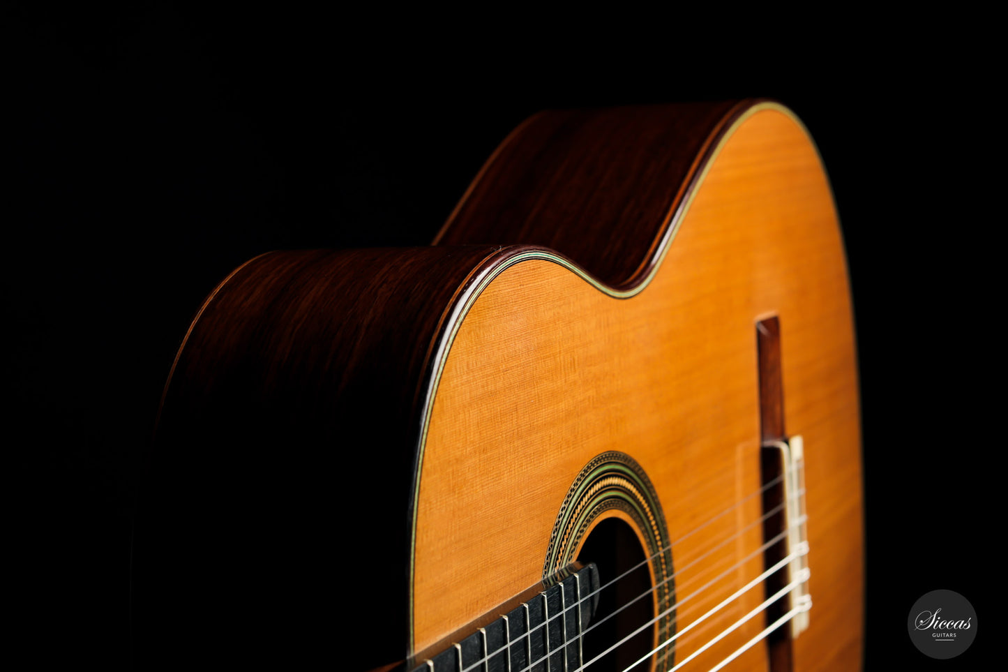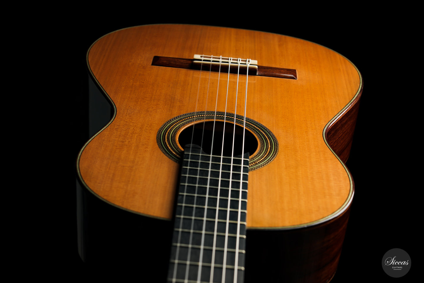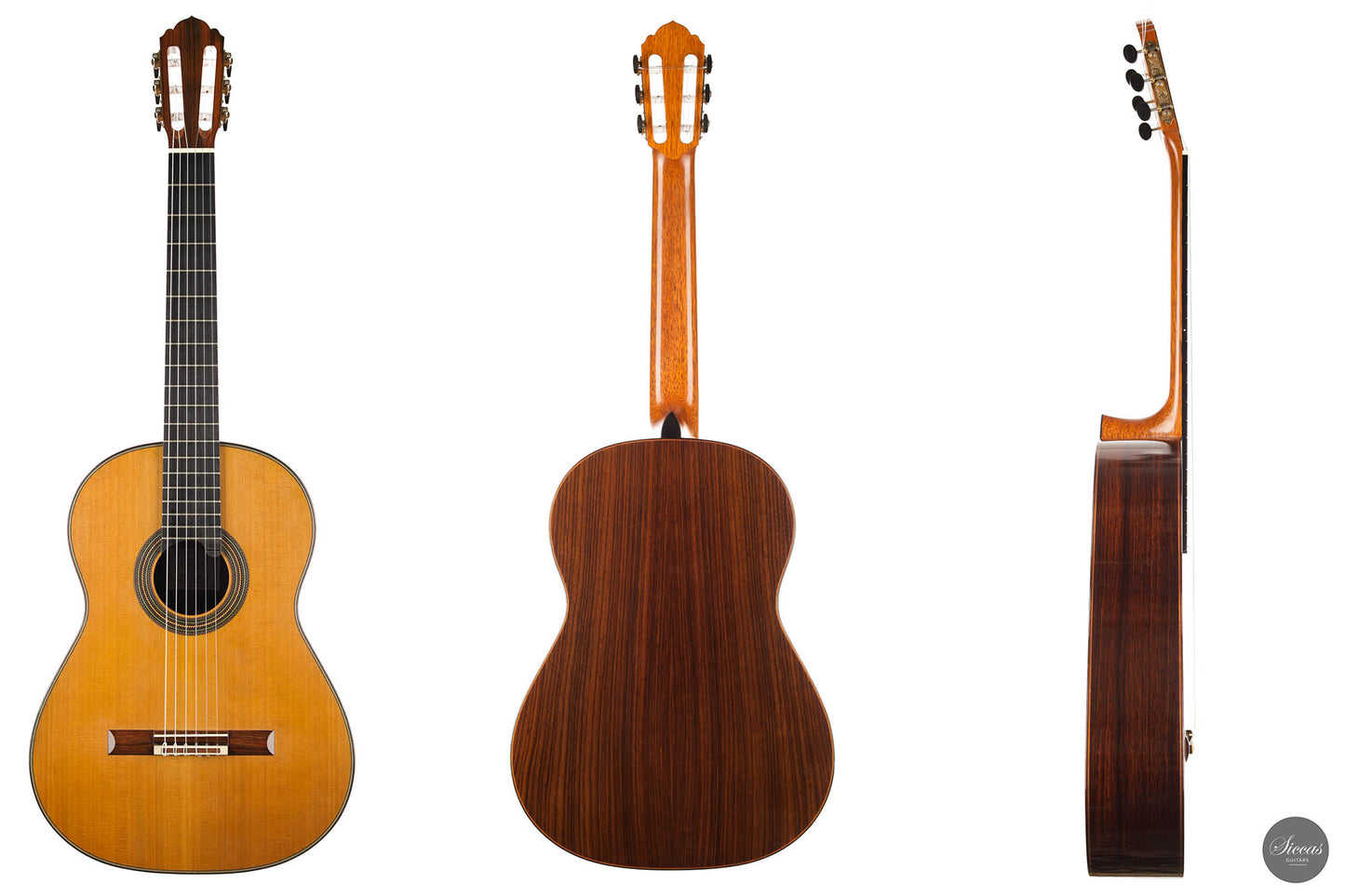 The sound of this guitar is generous, complex and honest. With its immense projection and solid first string, it is an instrument that can be used for concertizing, playing with chamber ensembles, and doing everything that can be done with a classical guitar at the highest level. The neck is very comfortable, the string action is ideal. This allows the player's left hand to move very naturally. It is a guitar that you should definitely try if you are looking for a first class classical guitar.