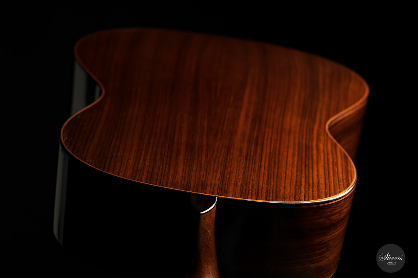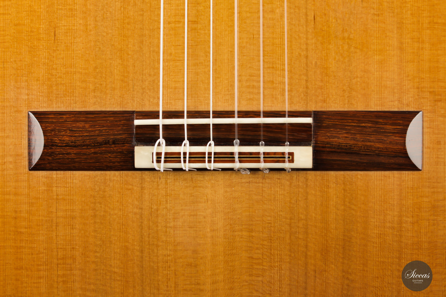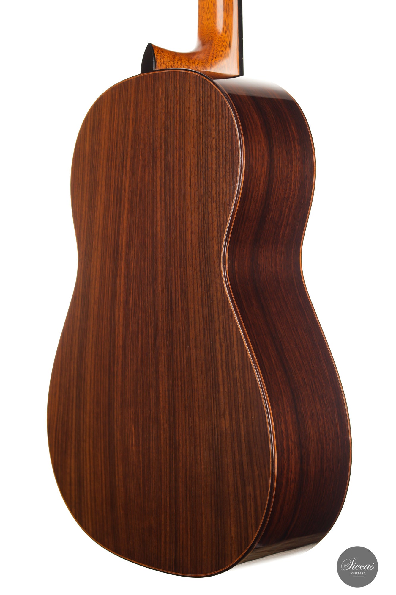 The sound of this guitar is generous, complex and honest. With its immense projection and solid first string, it is an instrument that can be used for concertizing, playing with chamber ensembles, and doing everything that can be done with a classical guitar at the highest level. The neck is very comfortable, the string action is ideal. This allows the player's left hand to move very naturally. It is a guitar that you should definitely try if you are looking for a first class classical guitar.