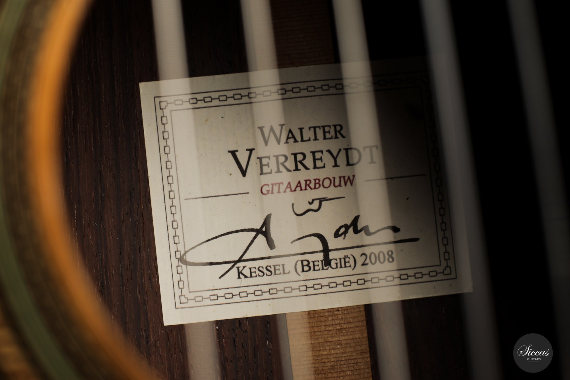 Walter Verreydt built his first guitars in 1985. He was primarily a woodworking teacher, and his love for music led him to make his first guitar and become a luthier. Since 1988 Walter teaches classical guitar making at the "Centrum voor Muziekinstrumentenbouw" in Puurs (Belgium). He studied many guitars of famous luthiers like Ignacio Fleta, Robert Bouchet, Hernandez y Aguado, and many more. His excellent relationships with Daniel Friederich and José Romanillos helped him in the development of his own ideas. His guitars are handmade in the Spanish tradition, and every instrument is the product of his personal growth and ongoing studies.