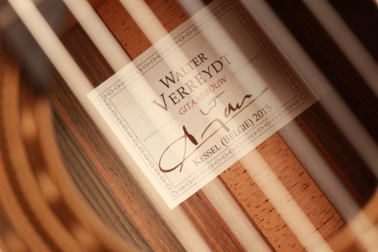 Walter Verreydt built his first guitars in 1985. He was primarily a woodworking teacher and his love for music led him to build his first guitar and to become a luthier. Since 1988 Walter teaches classical guitar making at the “Centrum voor Muziekinstrumentenbouw” in Puurs (Belgium). He studied many guitars of famous luthiers like Ignacio Fleta, Robert Bouchet, Hernandez y Aguado and many more. His very good relationships with Daniel Friederich and José Romanillos helped him in the development of his own ideas. His guitars are handmade in the Spanish tradition and every instrument is the product of his personal growth and constant studies.