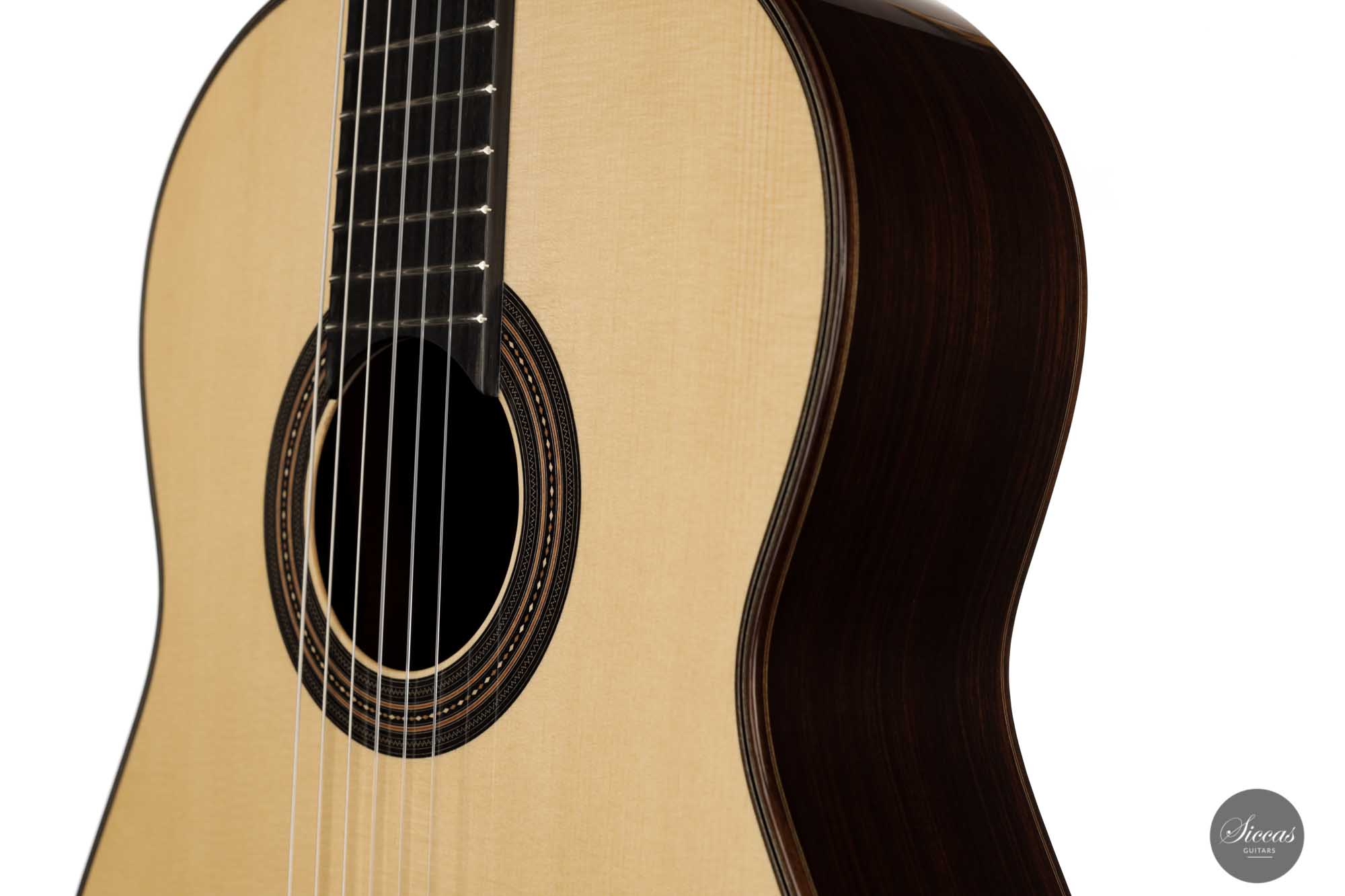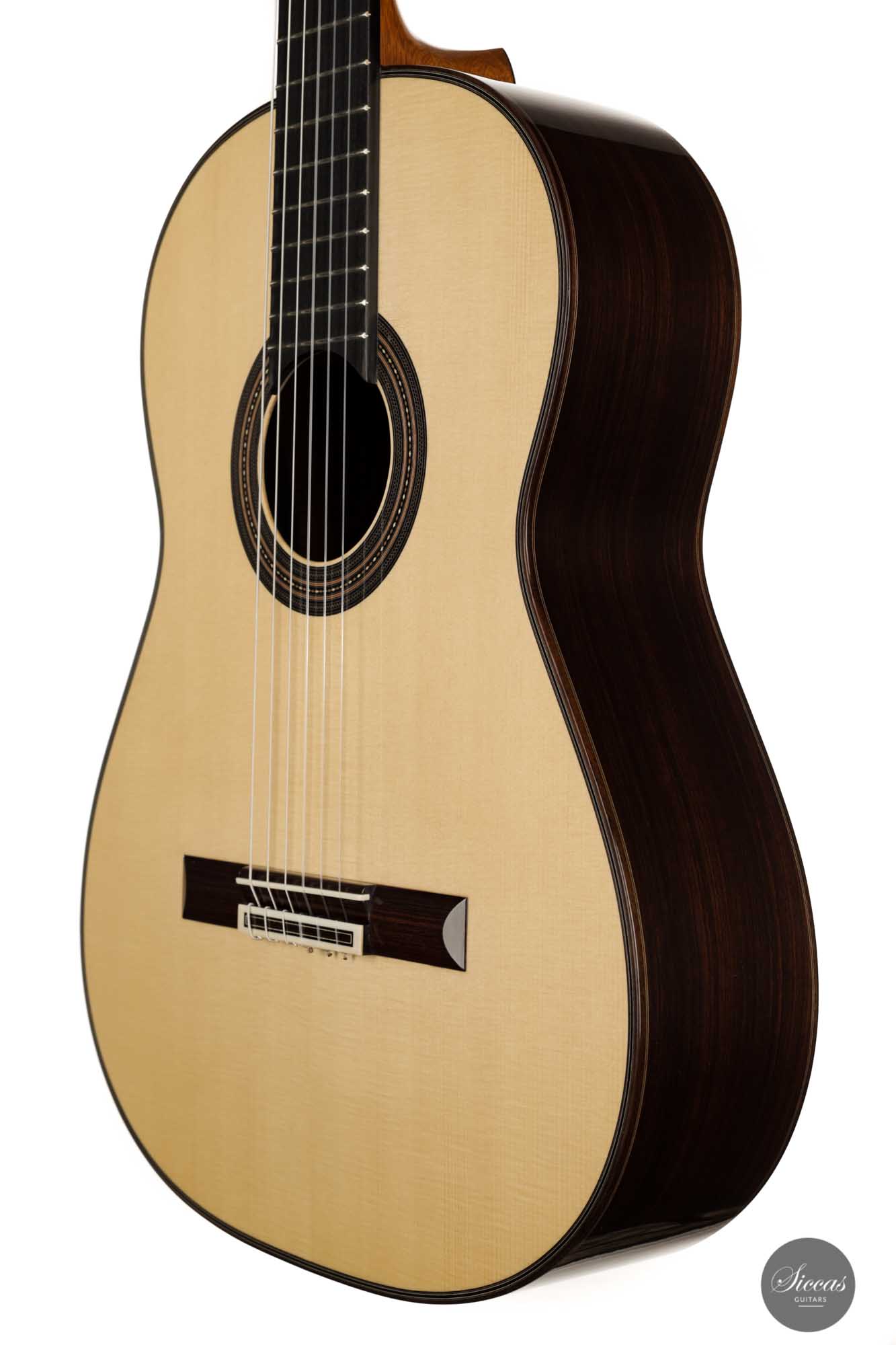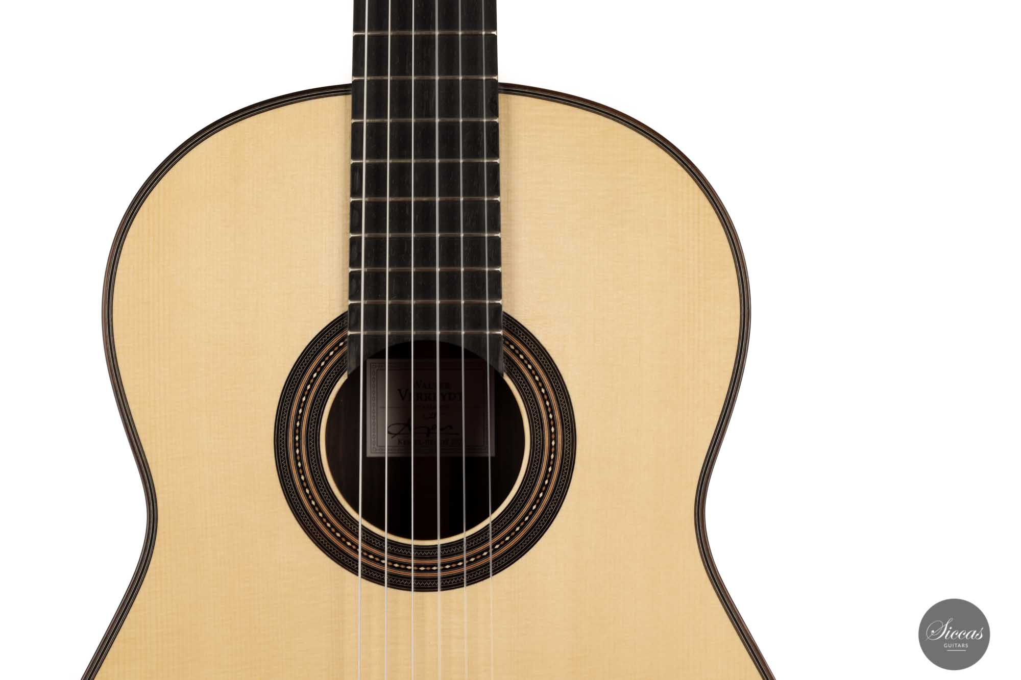 This is a grandiose guitar, a superb concert instrument, sophisticated and complete in every way. It is not only the sonority and response that are superb, but also the wide range of tonal colours offered by this Walter Verreydt with Lattice bracing that is impressive and inspiring. The first E-string has such liveliness and freedom that it unfolds its singing voice with impressive ease. Furthermore, the overall balance and sustain combined with the excellent playability make this guitar a five-star instrument. This Verreydt is truly special and highly recommended in every respect for any player looking for a superior and inspiring guitar.