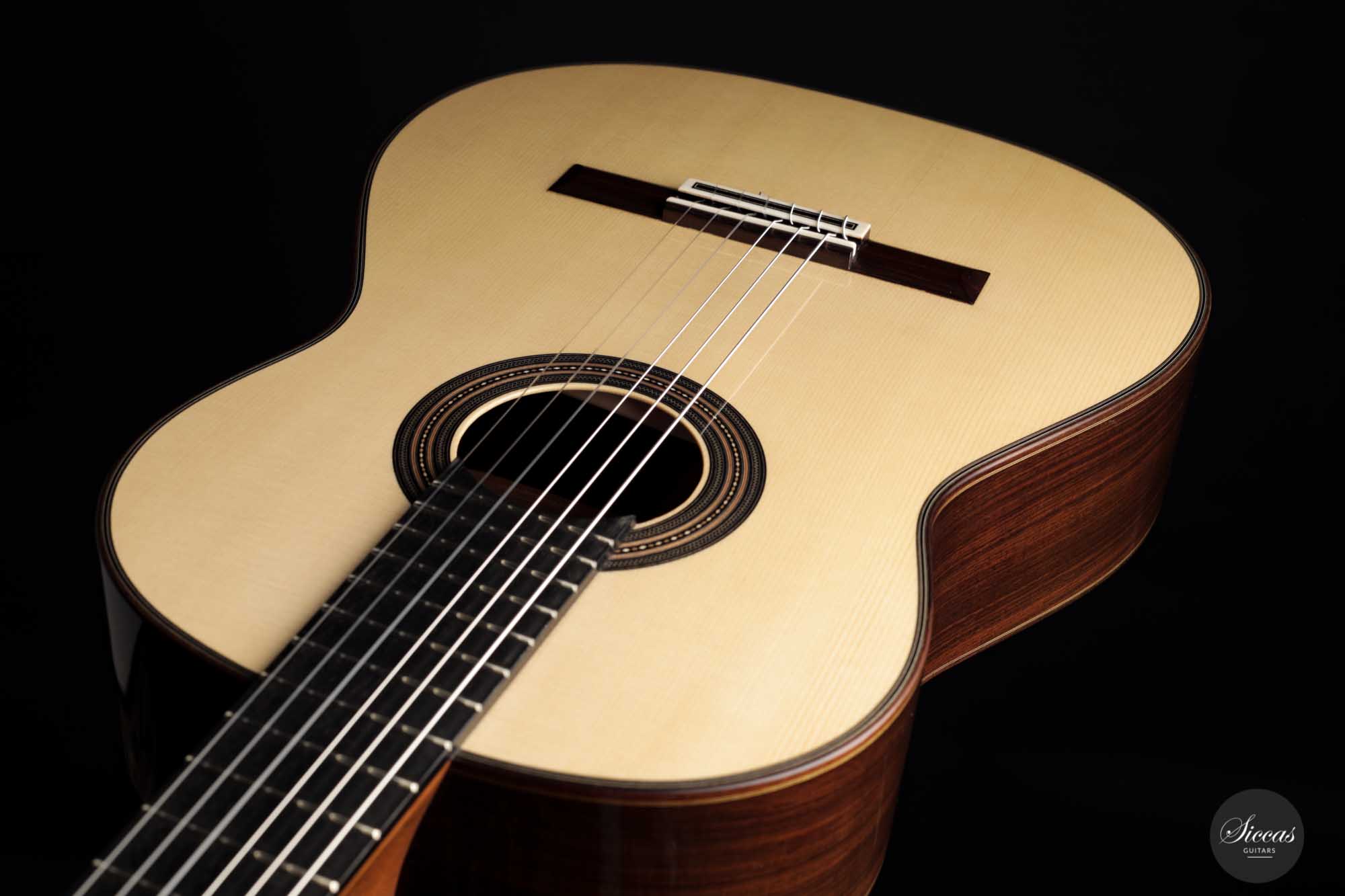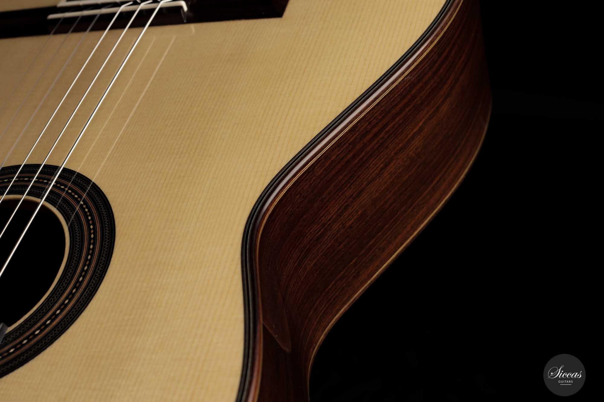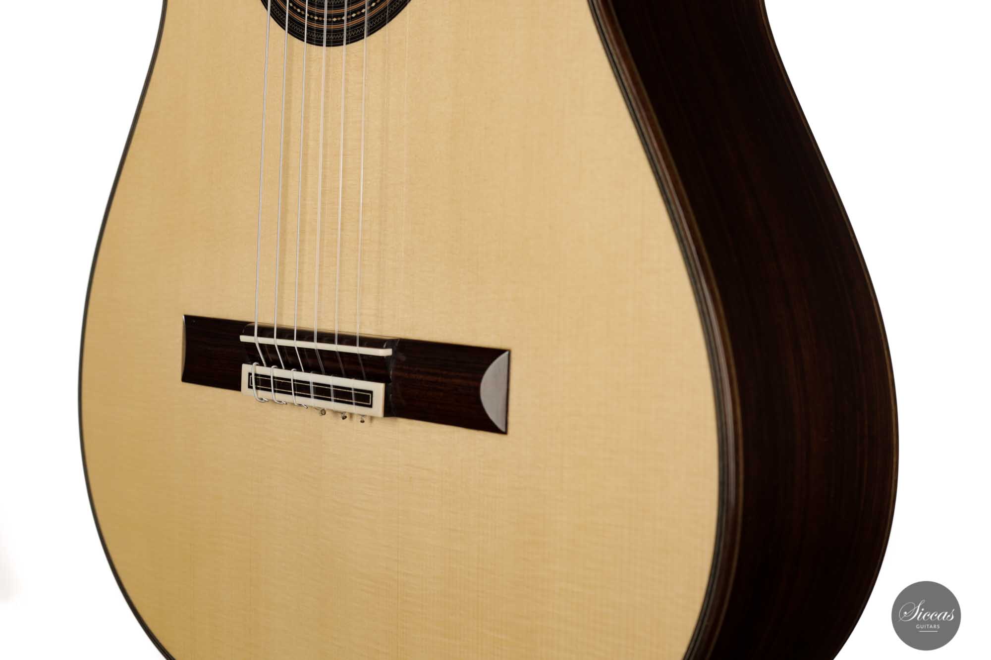 This is a grandiose guitar, a superb concert instrument, sophisticated and complete in every way. It is not only the sonority and response that are superb, but also the wide range of tonal colours offered by this Walter Verreydt with Lattice bracing that is impressive and inspiring. The first E-string has such liveliness and freedom that it unfolds its singing voice with impressive ease. Furthermore, the overall balance and sustain combined with the excellent playability make this guitar a five-star instrument. This Verreydt is truly special and highly recommended in every respect for any player looking for a superior and inspiring guitar.