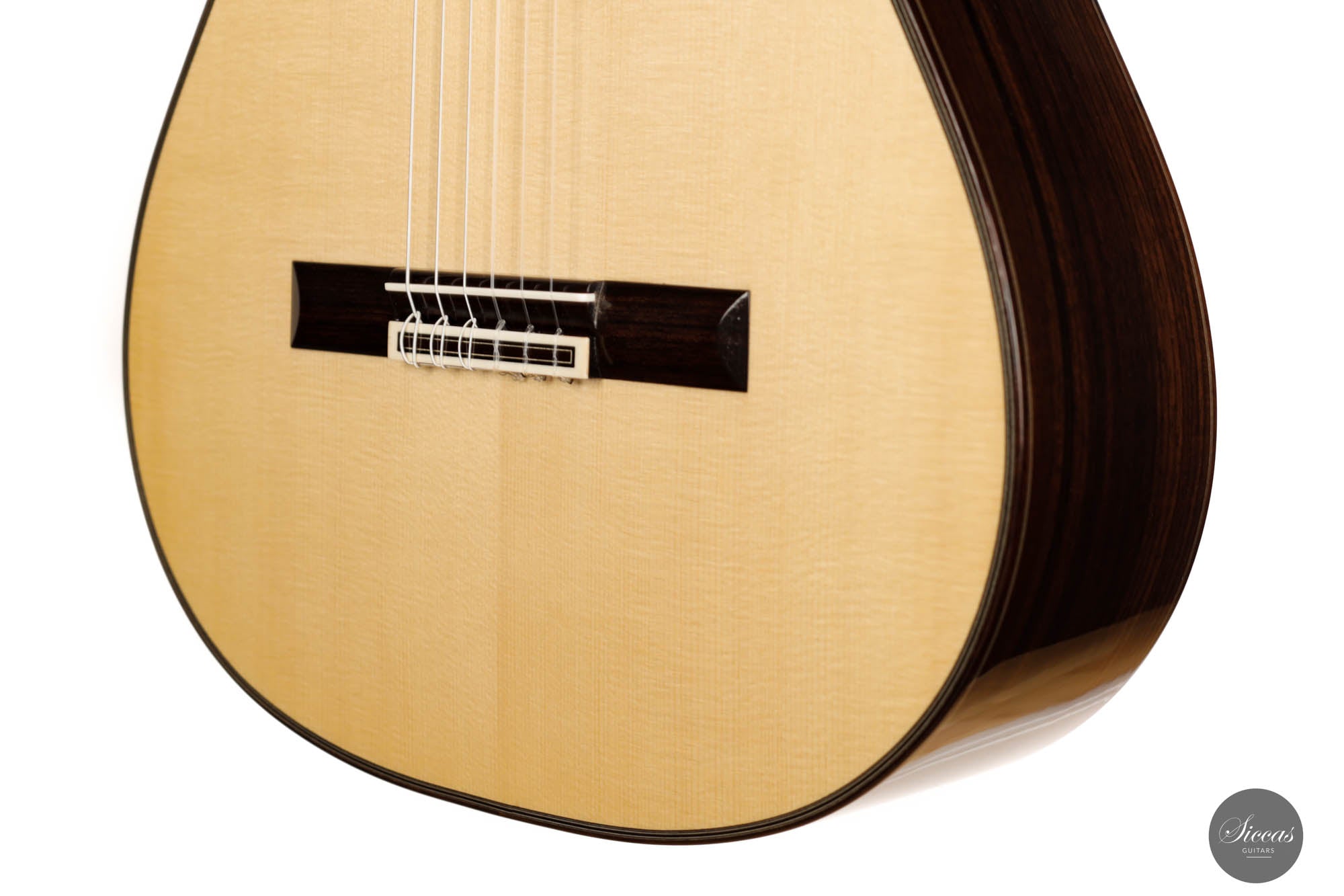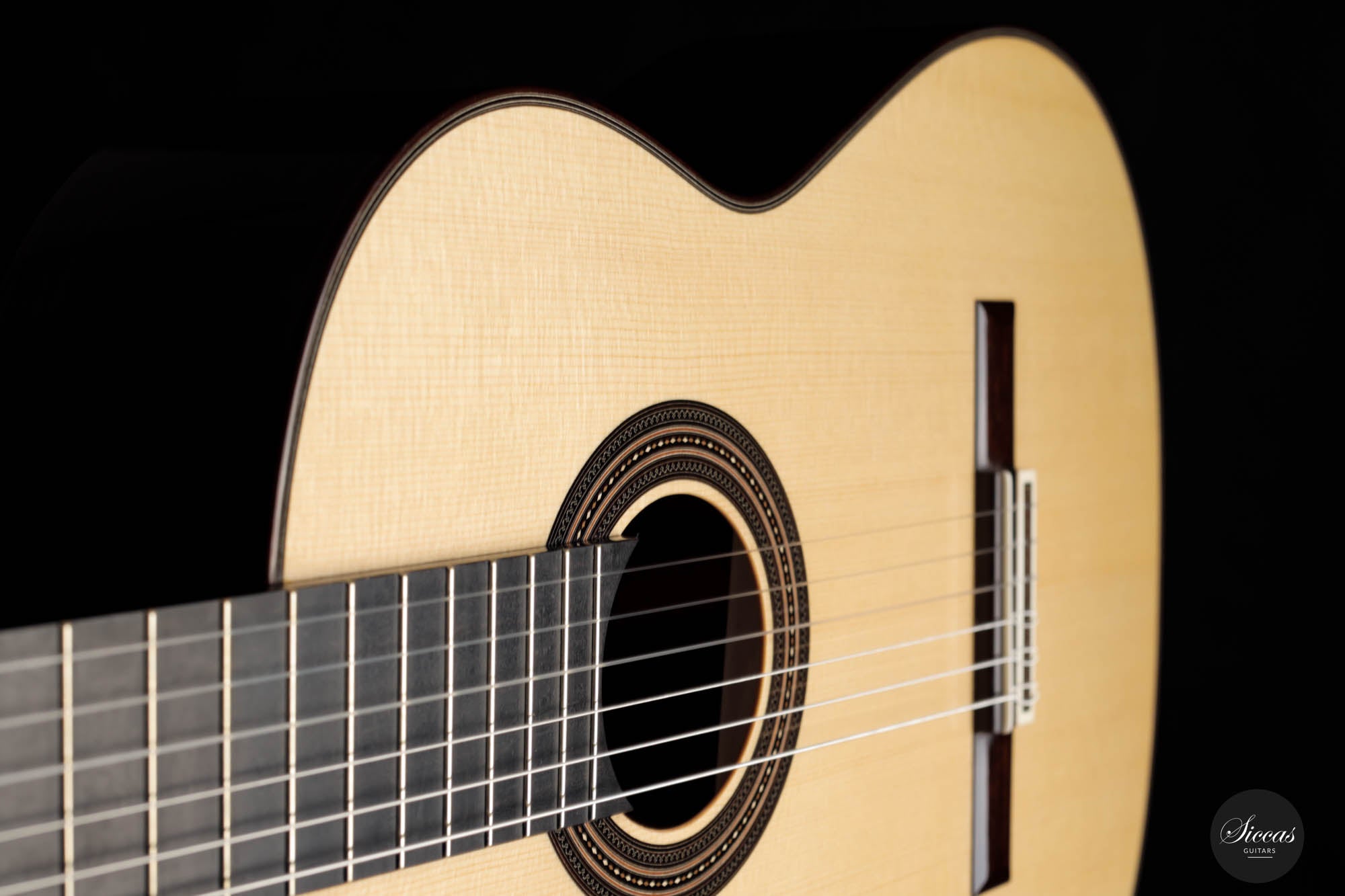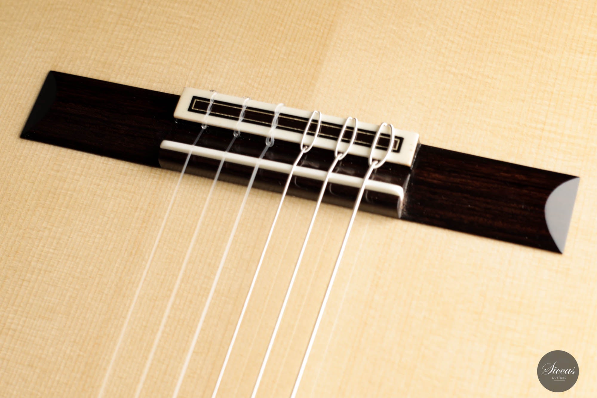 This guitar offers excellent volume and responsiveness, with a rich and delicate ground tone and endless dynamic possibilities. The wood-only lattice bracing adds to the wide range of tonal colors, making this guitar a concert-worthy instrument. Moreover, the first E-string has such liveliness and freedom that it unfolds its singing voice with impressive ease. The balance and sustain combined with the excellent playability make this guitar a true standout in its class.