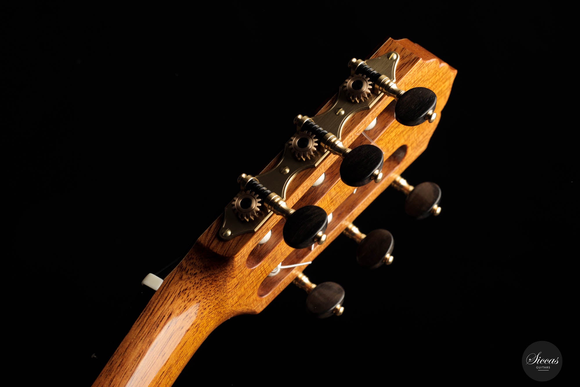 In addition to his workshop, Walter played an essential role in the education of young guitar makers. He taught at the Centrum voor Muziekinstrumentenbouw in Belgium from 1988 to 2020, where he imparted not only the basic techniques of guitar making but also a deep love for the craft and attention to detail. He was also a member of the Leonardo Guitar Research Project, which focused on sustainable non-tropical woods. Walter is one of the founders of the Cordefactum Festival, where luthiers from around the world come together for workshops, lectures, exhibitions, and concerts. He uses only the best, sustainably-sourced woods for his guitars, which are renowned for their quality and craftsmanship and are used by top guitar players worldwide.