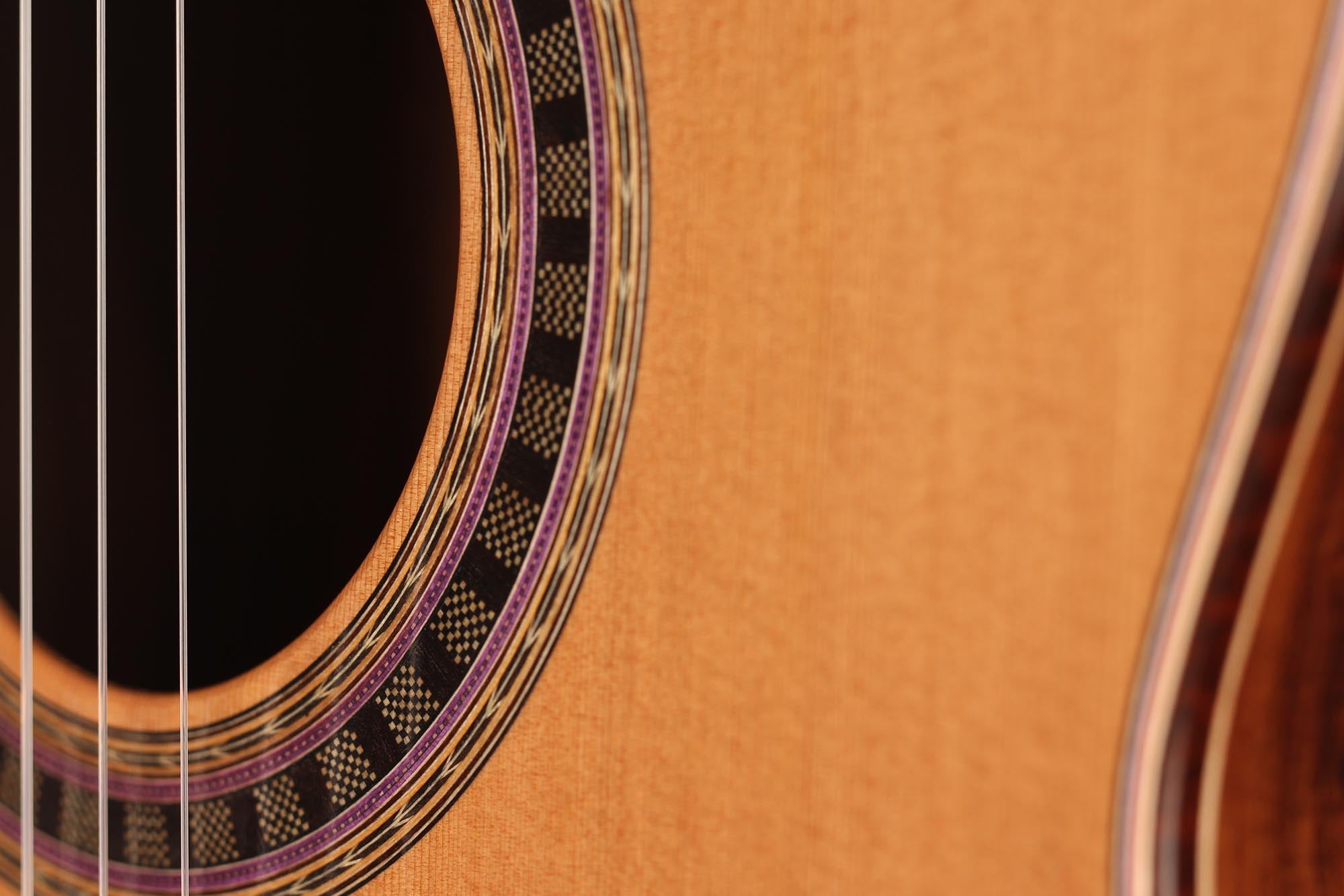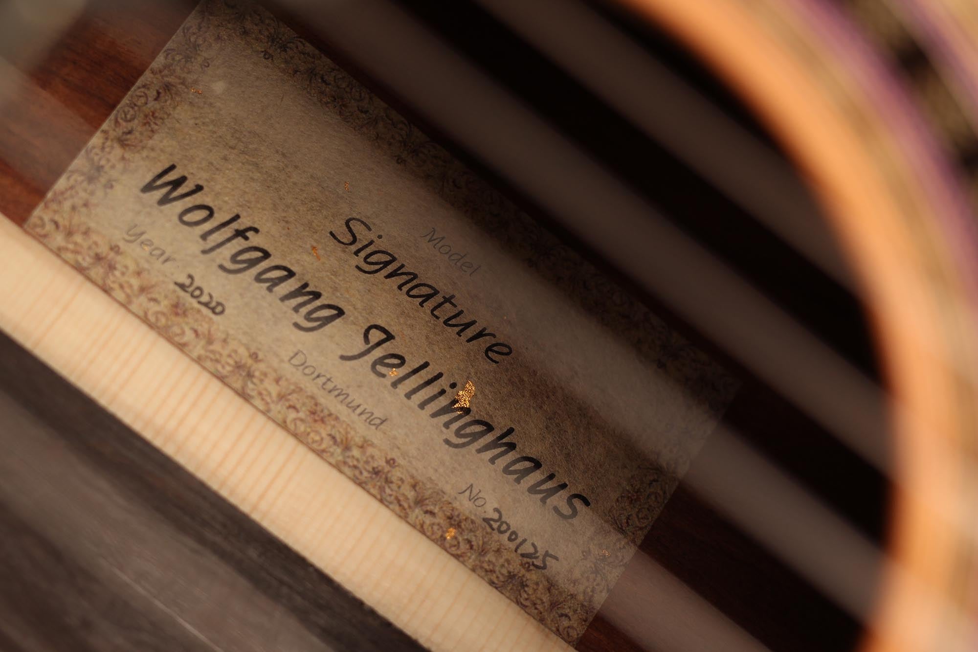 His latest series is the Wolfgang Jellinghaus Signature. This is a very modern guitar with some interesting features, such as the floating fingerboard, which is not fixed to the top, so this part of the top vibrates freely and contributes to the overall sound. The sound volume becomes very powerful, also thanks to the very light double-top construction. This makes it possible to produce a very full and room-filling tone with little effort of the right hand, which is very pleasant for the right hand.The armrest also contributes to the overall comfort. The guitar is finished with shellac which completes the overall picture of this instrument very nicely. In this price category, the guitar is more than convincing.
