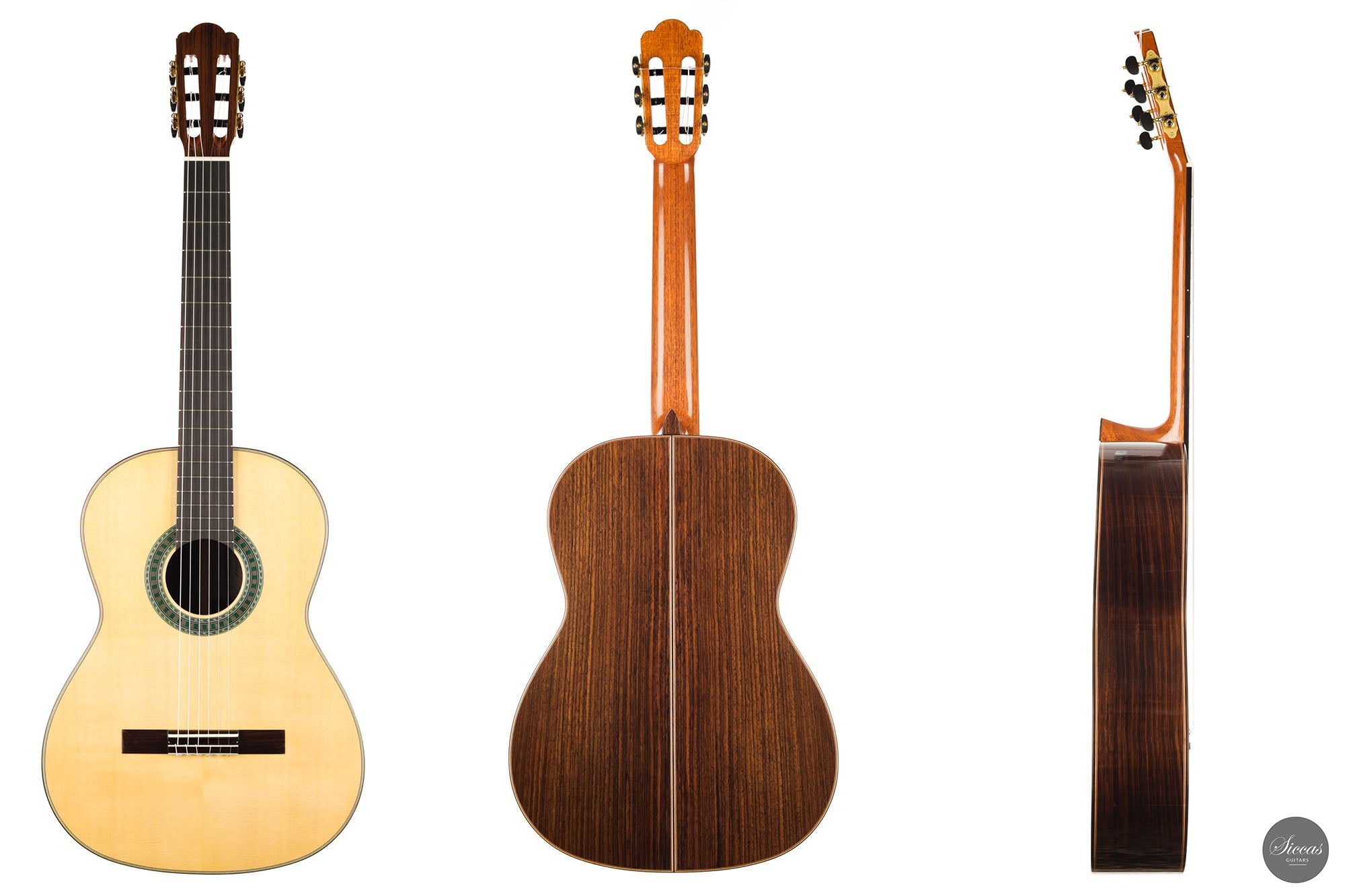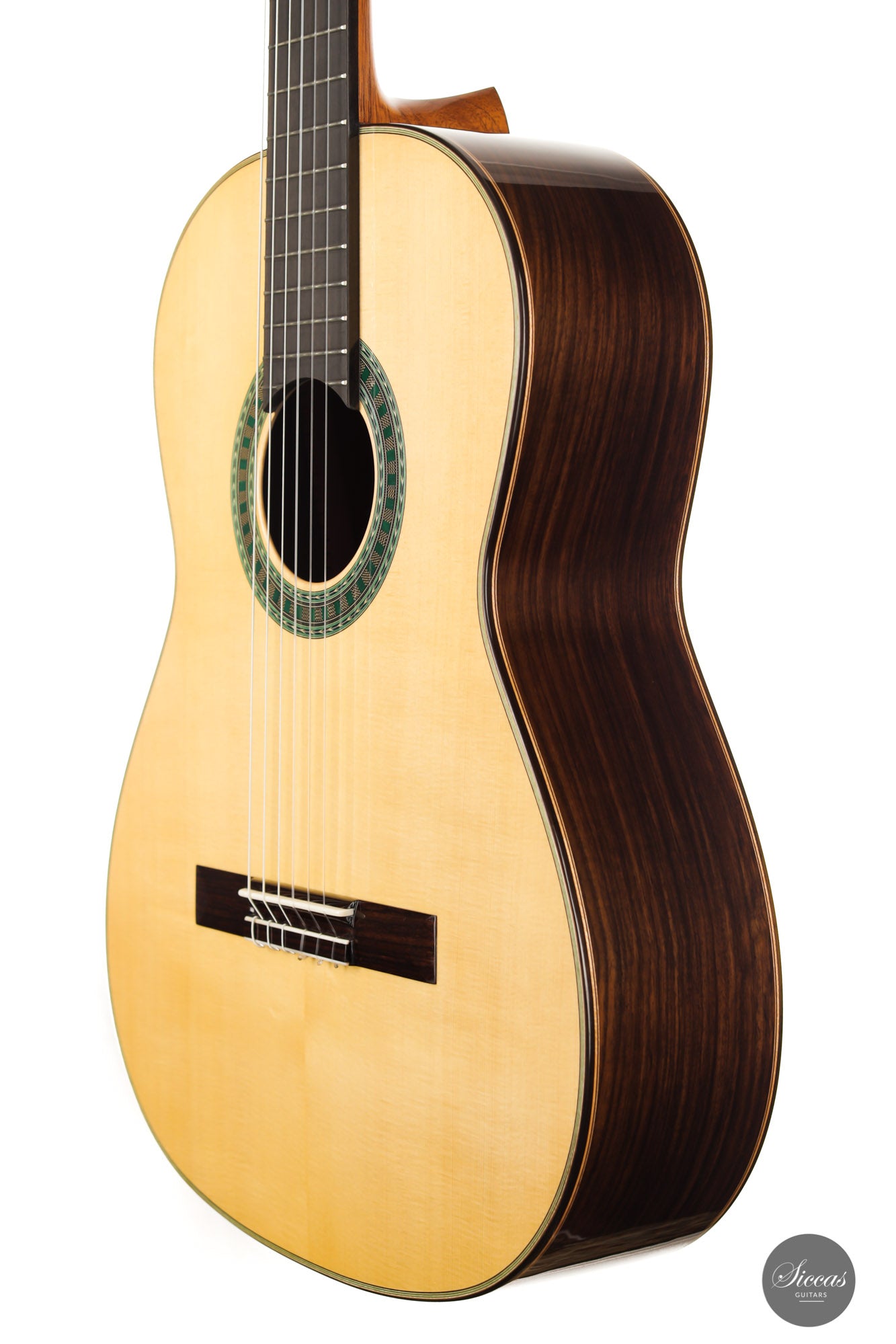 The Bavaria A model is the budget version of the 1A, built with Indian rosewood back and sides and completely french polished with shellac. The spruce top is traditionally braced and shows a natural light shade. Rich tone colors, perfect voice separation and a crystal clear singing tone make this guitar an instrument with great value for money.