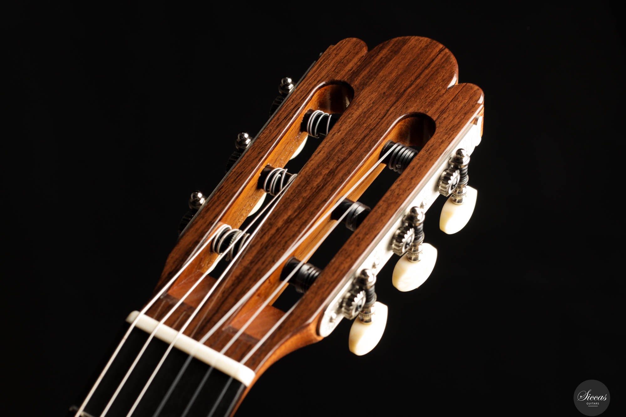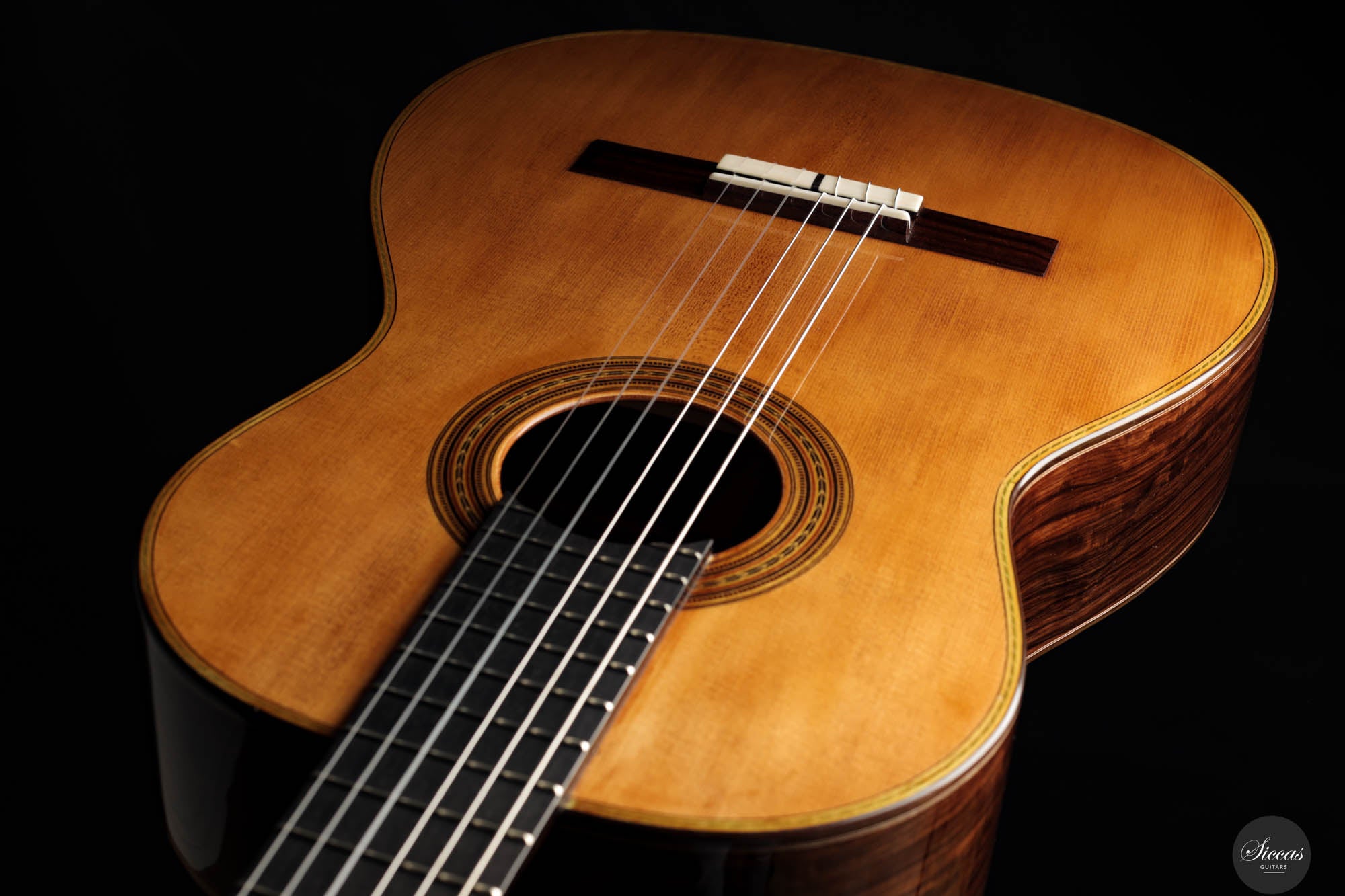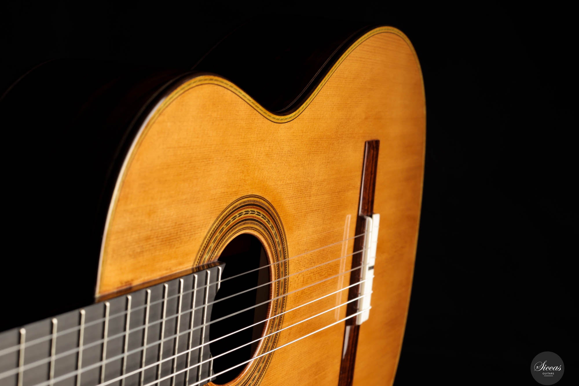 Inspired by the iconic designs of Francisco Simplico, this new model from Jellinghaus is a captivating blend of traditional artistry and contemporary craftsmanship. Paying homage to the legendary guitar maker, this instrument incorporates key elements of Simplico's style, resulting in a guitar that resonates with the old Spanish characteristics beloved by many. Its quick response and great balance are standout features, ensuring a playing experience that is both dynamic and satisfying. The guitar's aesthetic and tonal qualities reflect a deep understanding and appreciation of classical guitar heritage, making it an appealing choice for those who cherish the timeless sound and feel of traditional Spanish guitars, while enjoying the benefits of modern luthiery techniques.