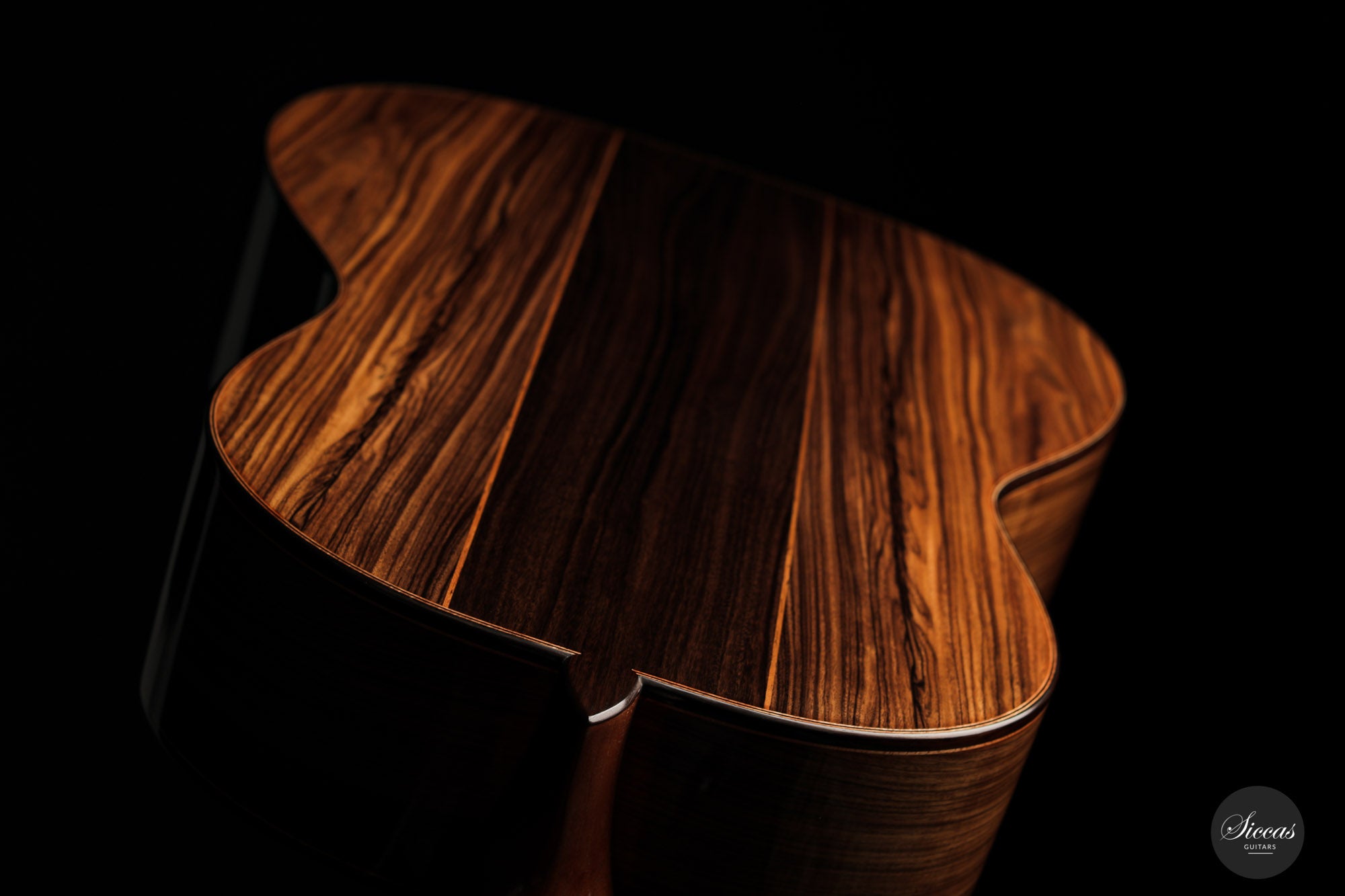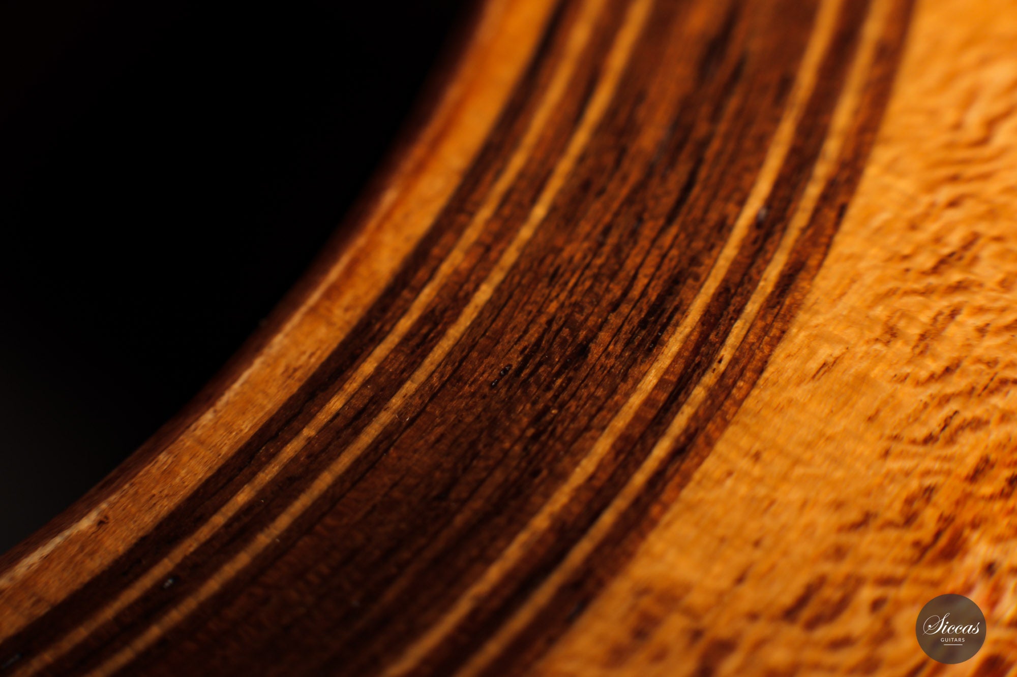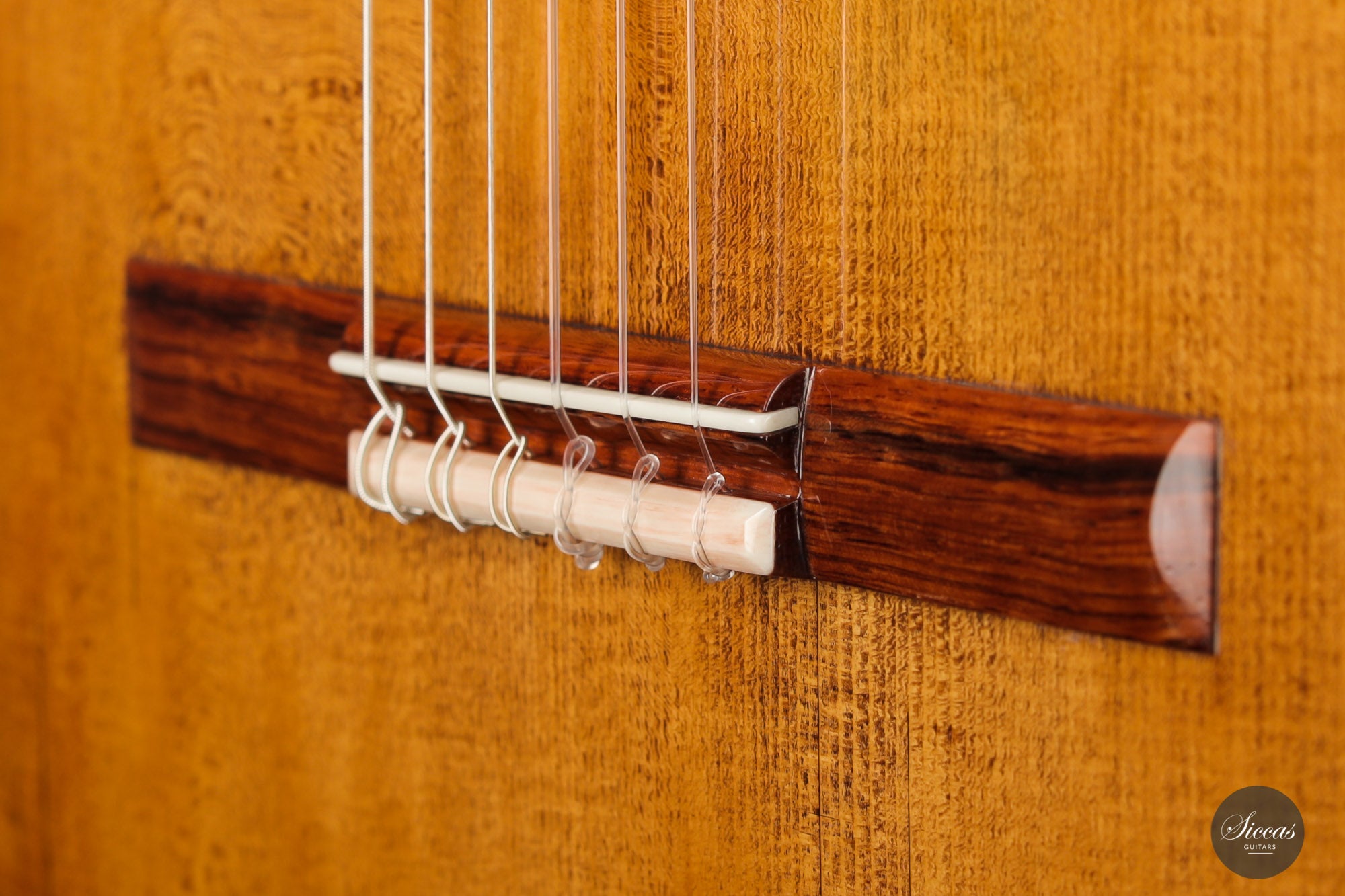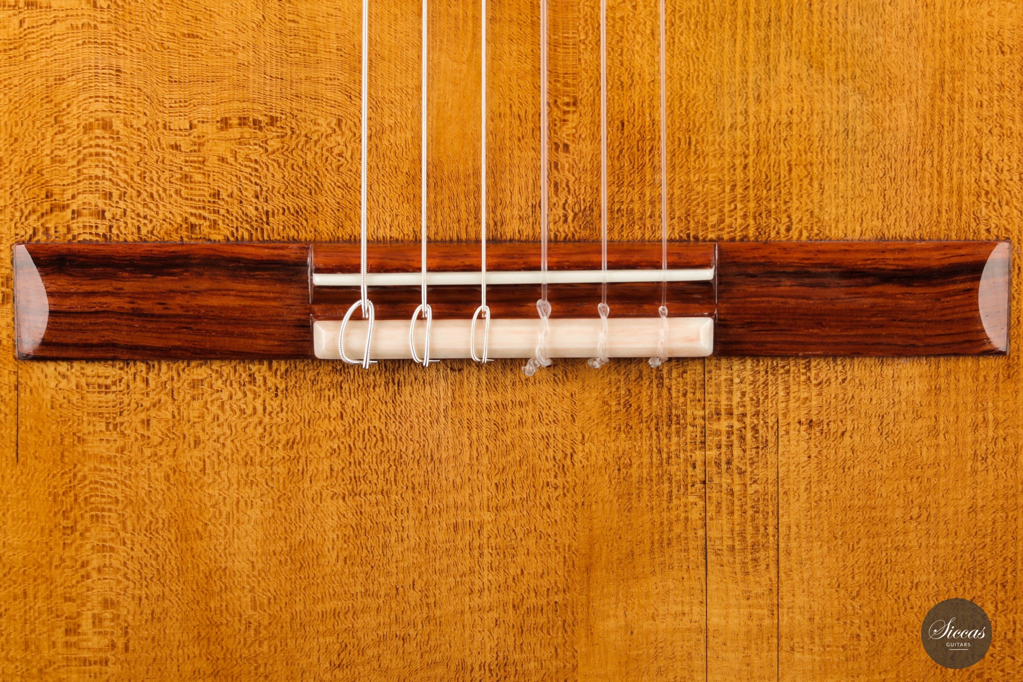 Lightweight, responsive, and visually captivating, this replica of the fourth guitar by Antonio de Torres is an absolute gem. This homage to one of Antonio de Torres’ most famous instruments, also known as “La Leona”, is phenomenal. One can actually feel the special charm coming from the warm tone and the singing ability of this beautiful guitar. The easy responsiveness of the instrument is a source of great pleasure, giving it a uniquely playful character and an inspiring expression.