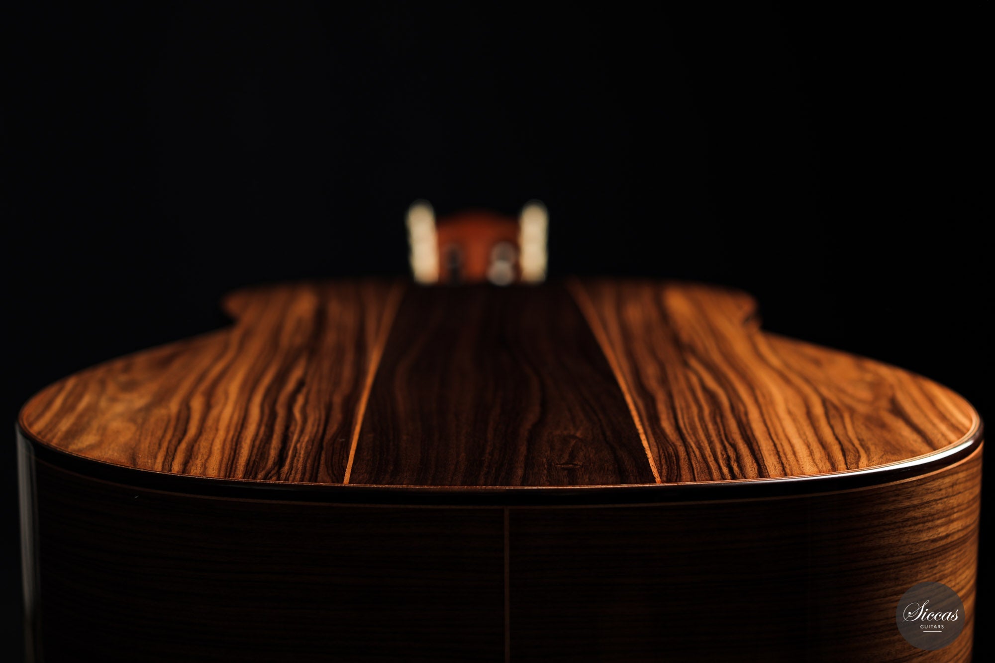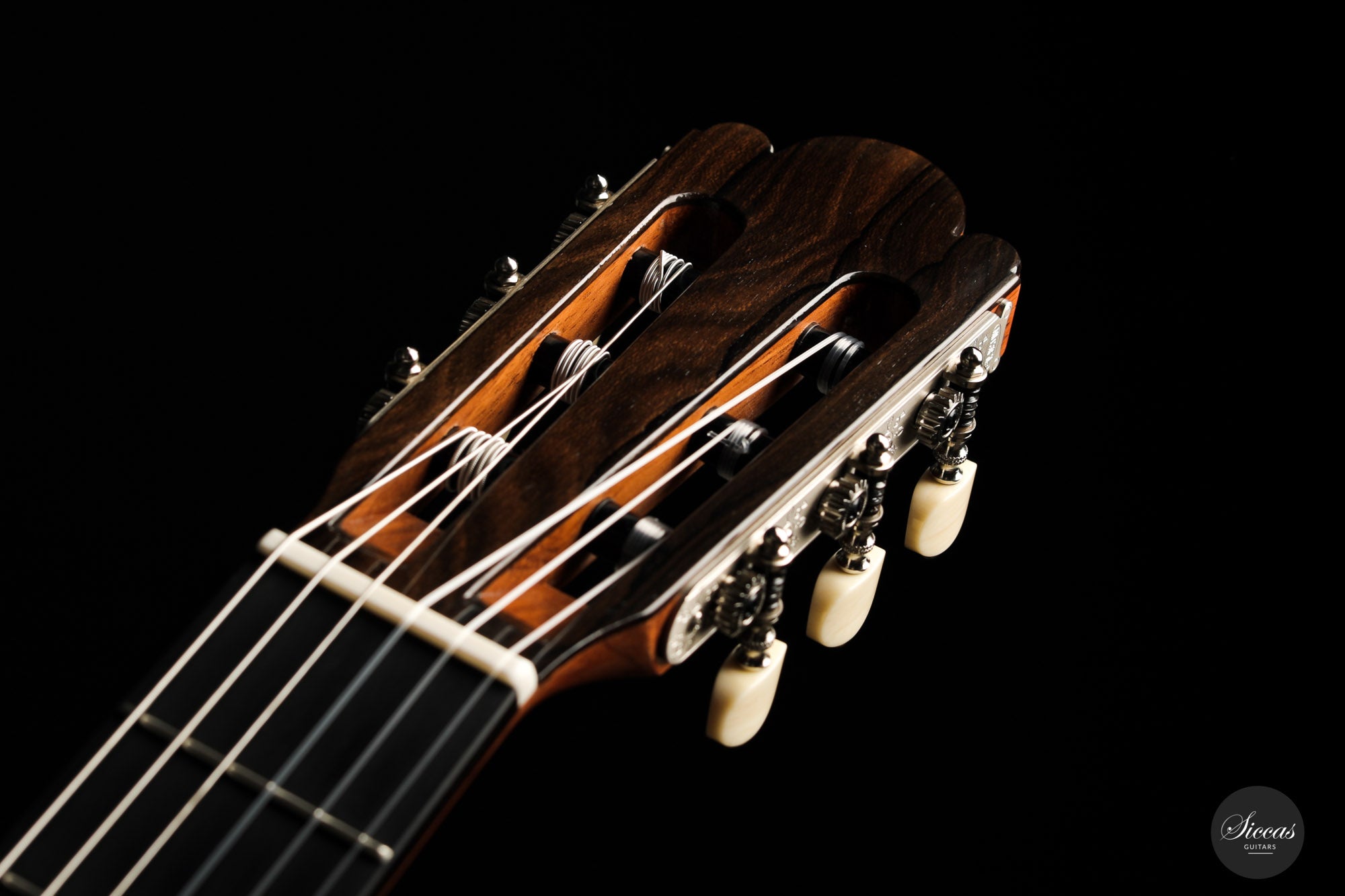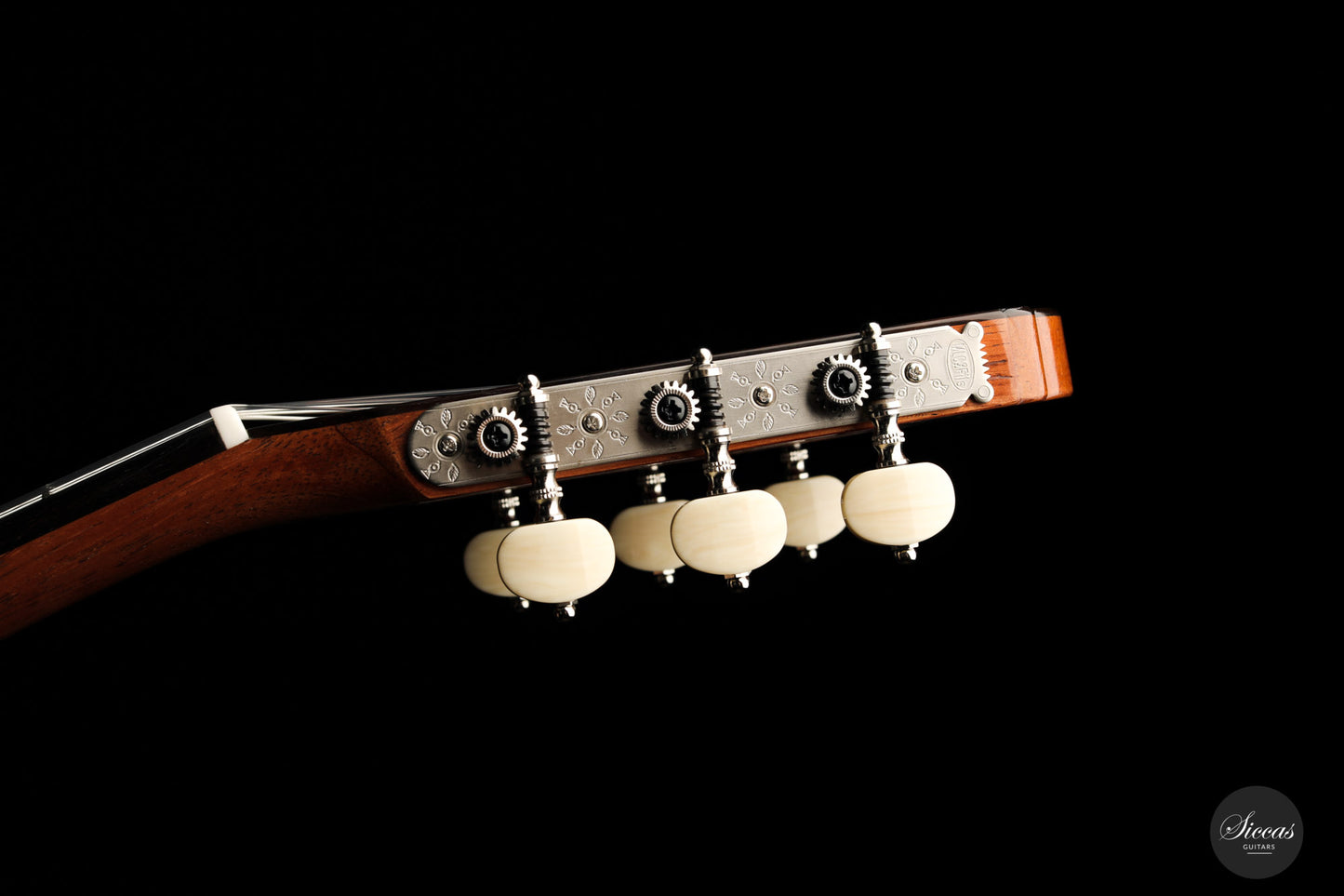 Lightweight, responsive, and visually captivating, this replica of the fourth guitar by Antonio de Torres is an absolute gem. This homage to one of Antonio de Torres’ most famous instruments, also known as “La Leona”, is phenomenal. One can actually feel the special charm coming from the warm tone and the singing ability of this beautiful guitar. The easy responsiveness of the instrument is a source of great pleasure, giving it a uniquely playful character and an inspiring expression.