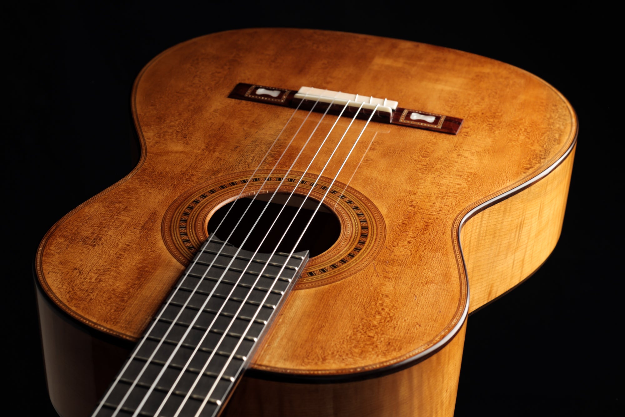This beautiful guitar is a replica of guitar number 43, which the great master Antonio de Torres built in 1883. It was built in Antonio de Torres' second era, also called Segunda epoca, and is a specially decorated instrument with a back made of stunning flamed maple. As always, a great deal of effort was put into building a faithful first quality copy in Wolfgang Jellinghaus' workshop, and the result is simply magnificent.