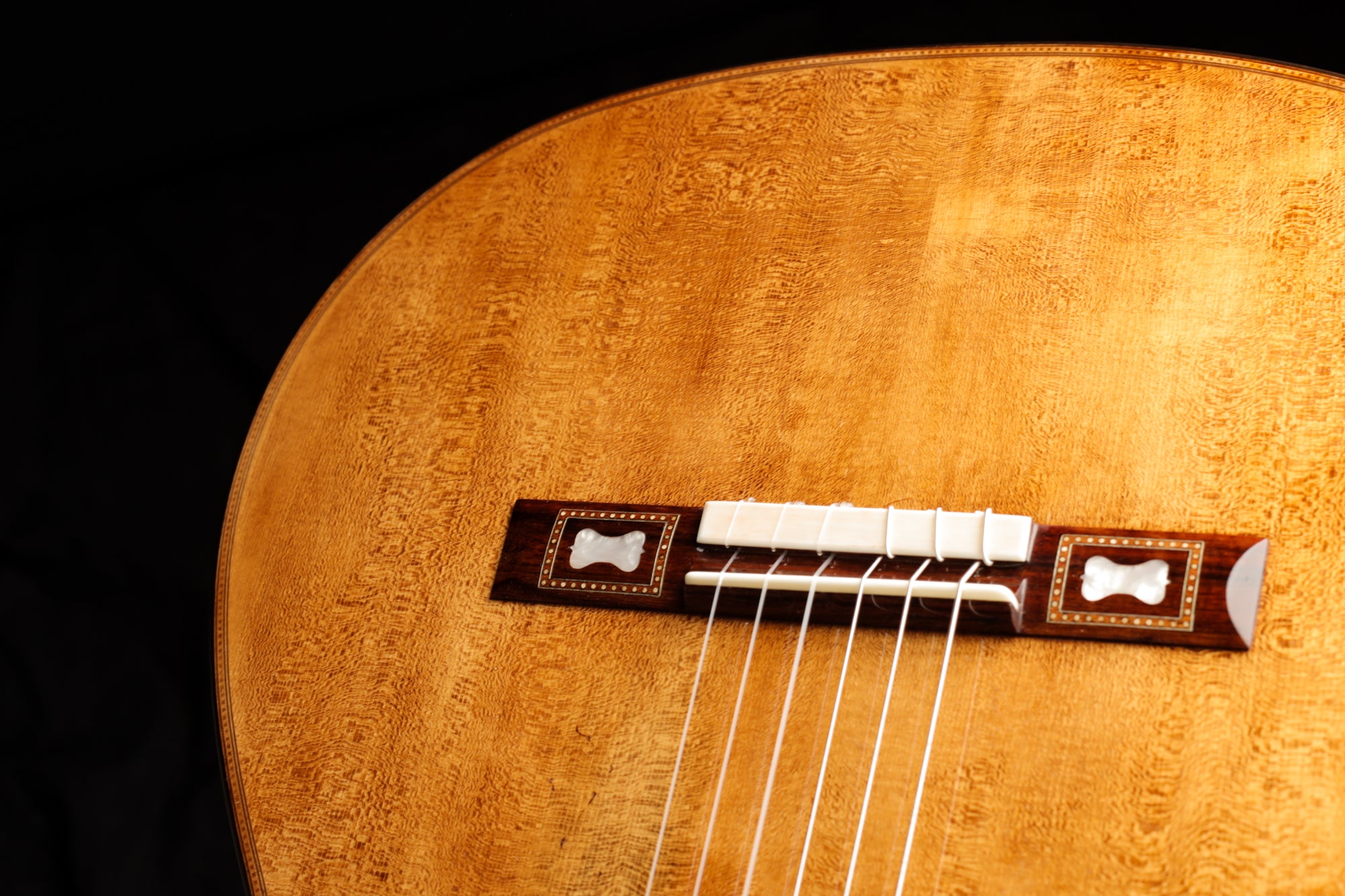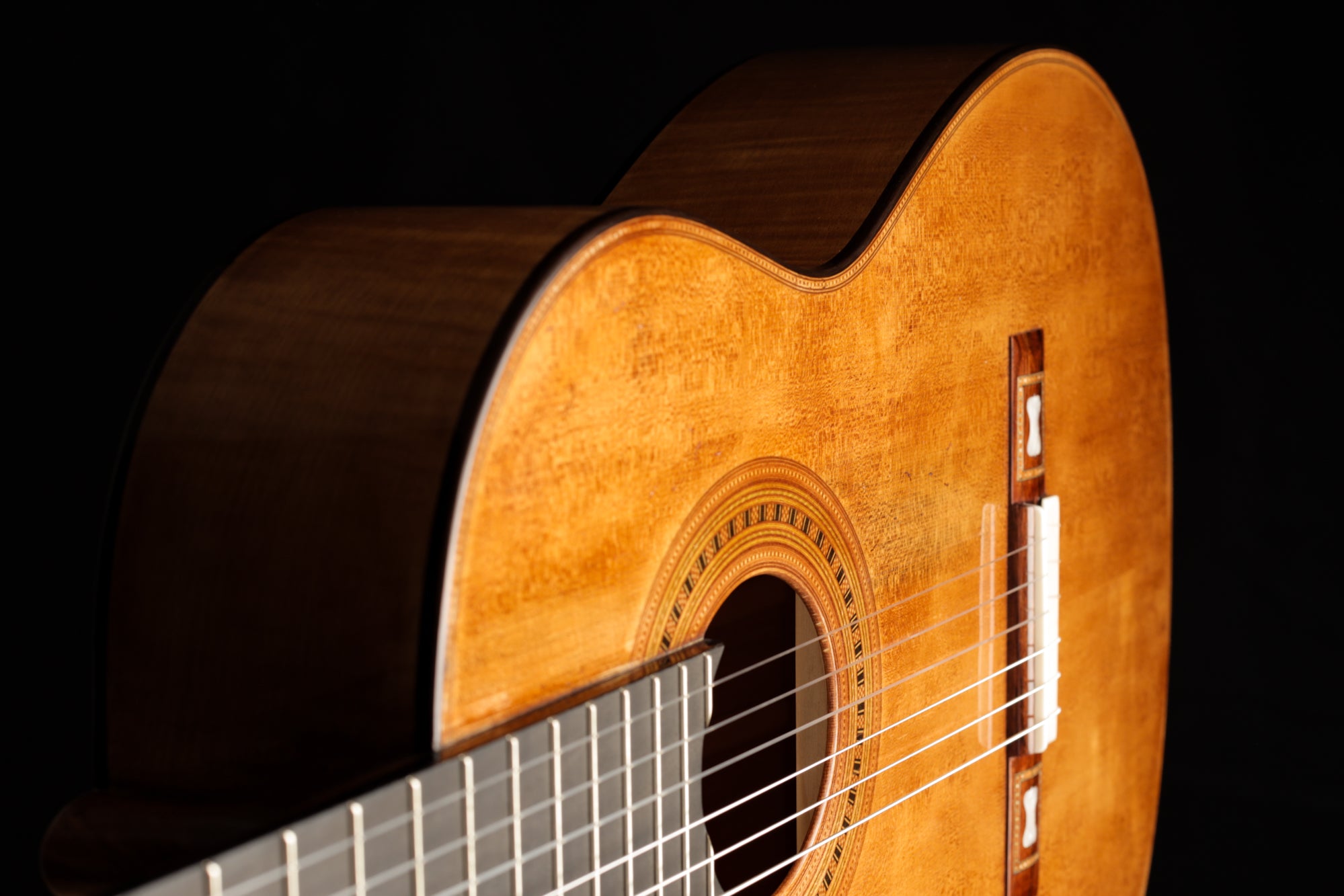 This beautiful guitar is a replica of guitar number 43, which the great master Antonio de Torres built in 1883. It was built in Antonio de Torres' second era, also called Segunda epoca, and is a specially decorated instrument with a back made of stunning flamed maple. As always, a great deal of effort was put into building a faithful first quality copy in Wolfgang Jellinghaus' workshop, and the result is simply magnificent.