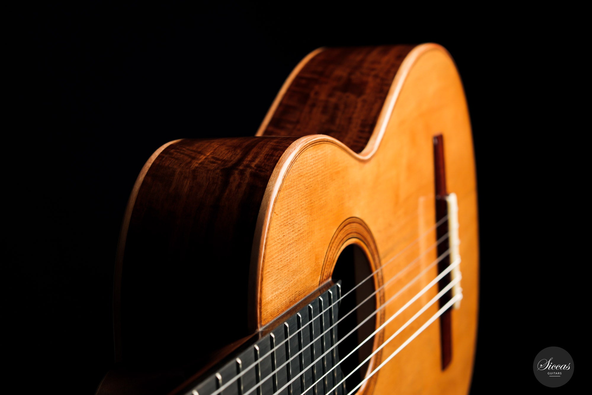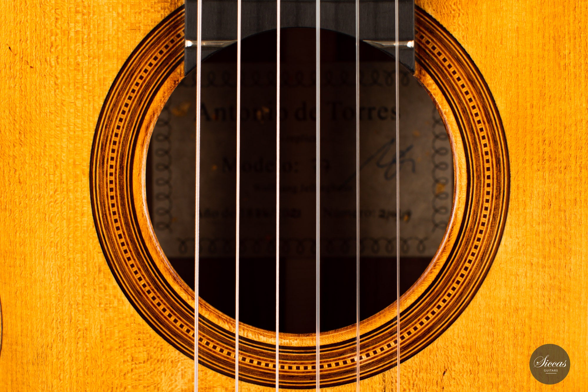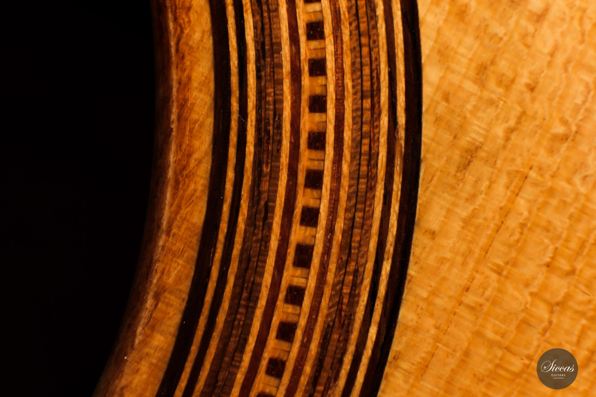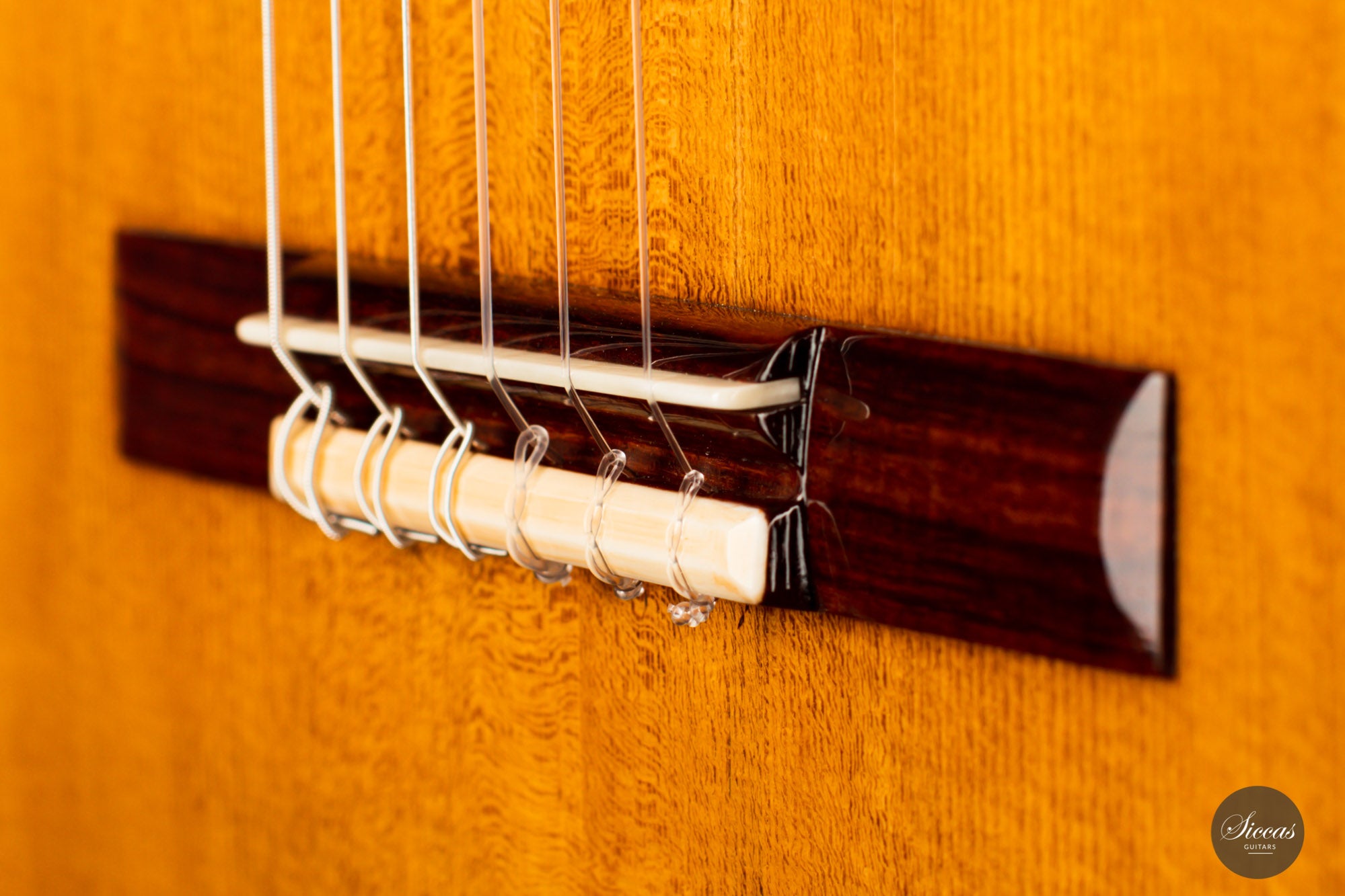 This lovely “Torres 77” is a real joy to play. Smaller-bodied and offering a unique playing experience, this model is light, responsive, and has a surprisingly grand volume. Granadillo back and sides have been chosen for this handmade “Torres 77” opus. Moreover, the spruce top is of excellent quality, with bear claws and beautiful grain.