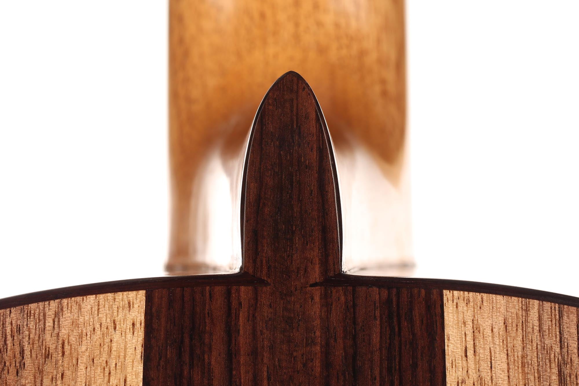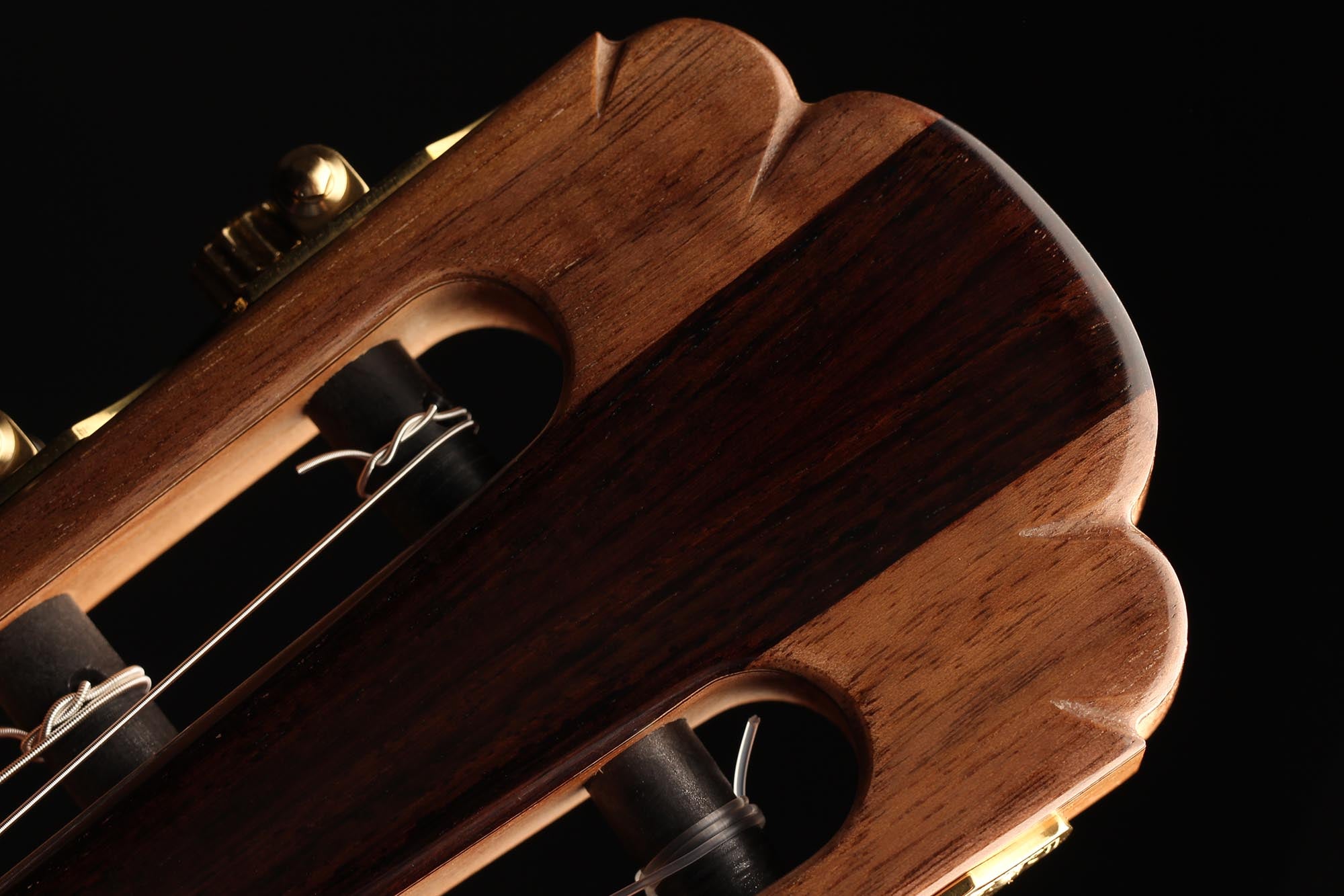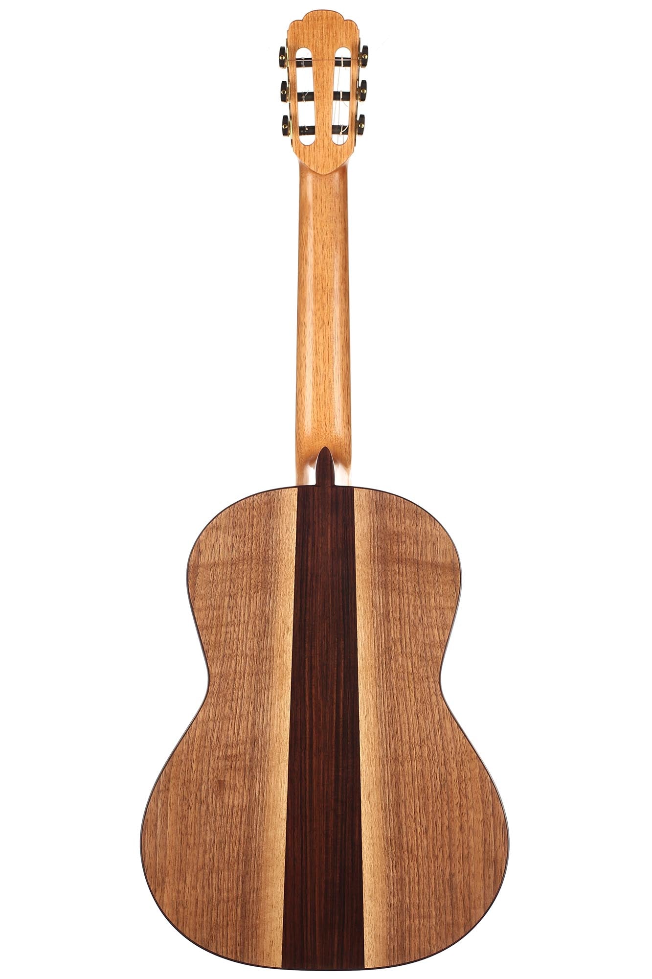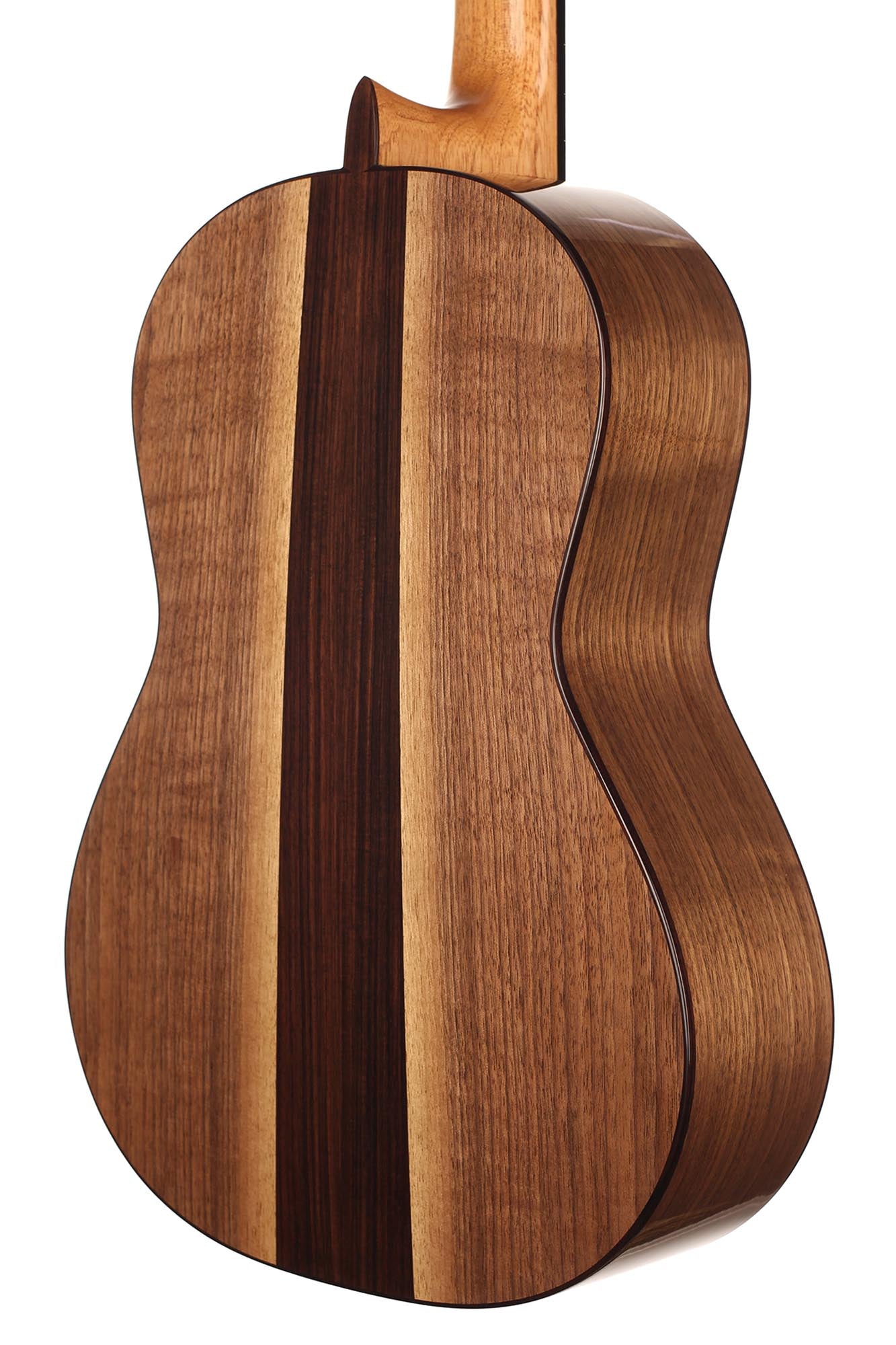 The combination of a cedar soundboard and a spruce traditional bracing gives the instrument a great softness and a clear precise sound at the same time. The playability is splendid for both the left and right hand. This instrument leaves the guitarist great freedom allowing to approach all the repertoires. Moreover, the sound volume is generous, and the general aesthetics absolutely charming.
