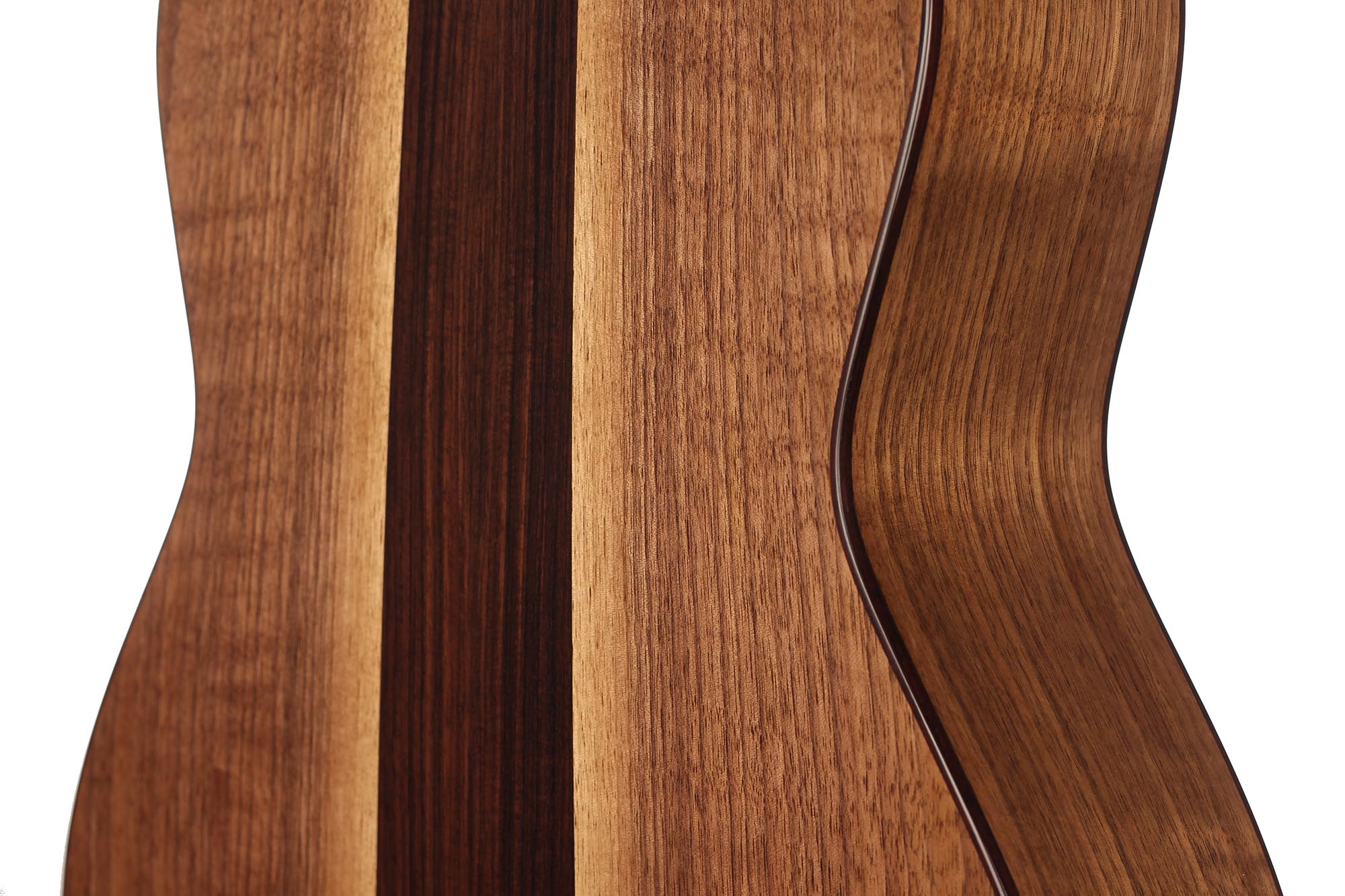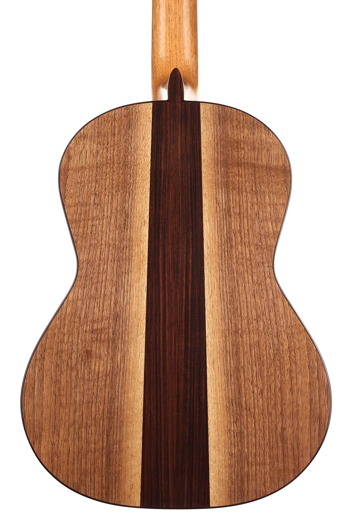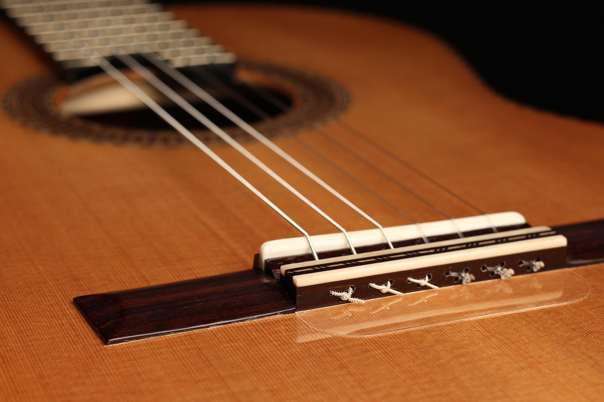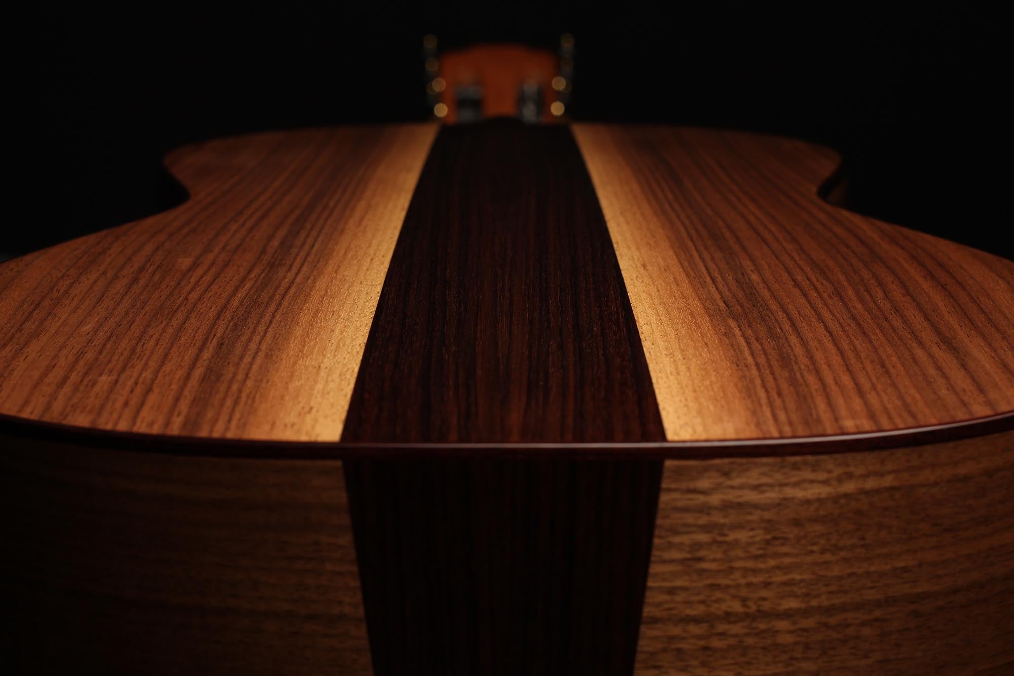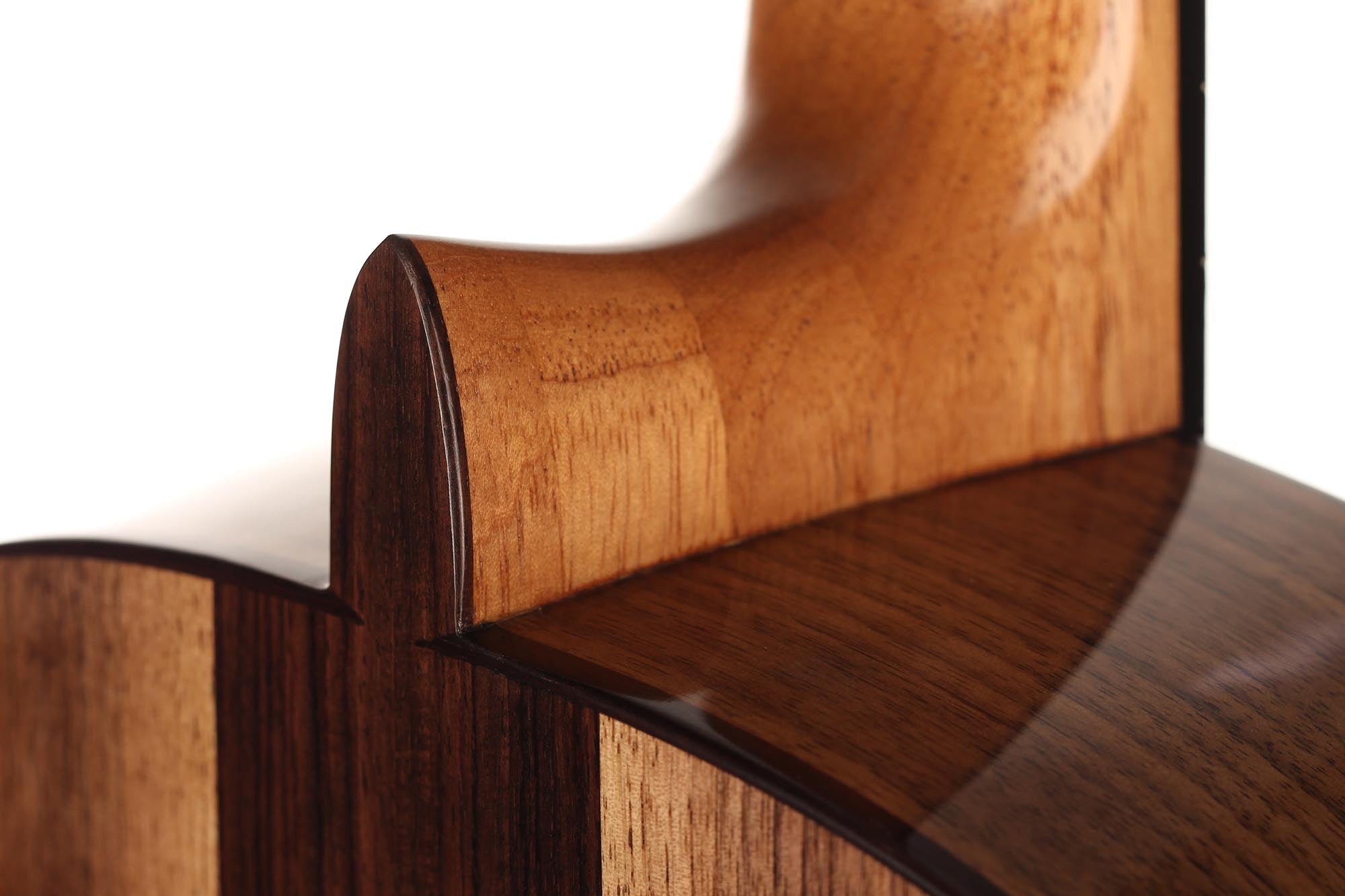 The combination of a cedar soundboard and a spruce traditional bracing gives the instrument a great softness and a clear precise sound at the same time. The playability is splendid for both the left and right hand. This instrument leaves the guitarist great freedom allowing to approach all the repertoires. Moreover, the sound volume is generous, and the general aesthetics absolutely charming.