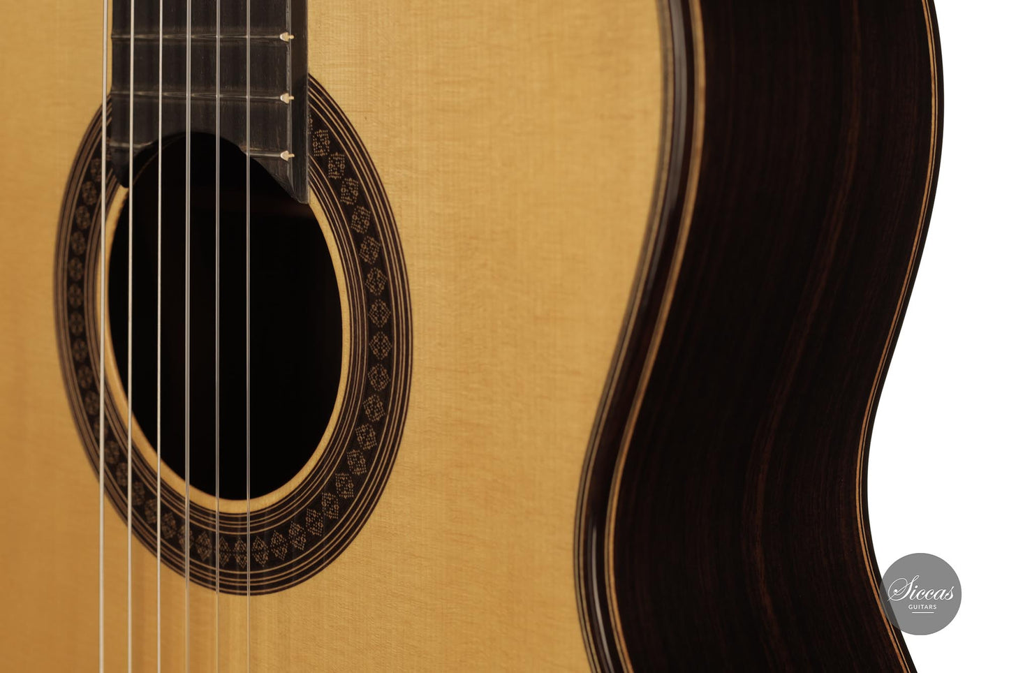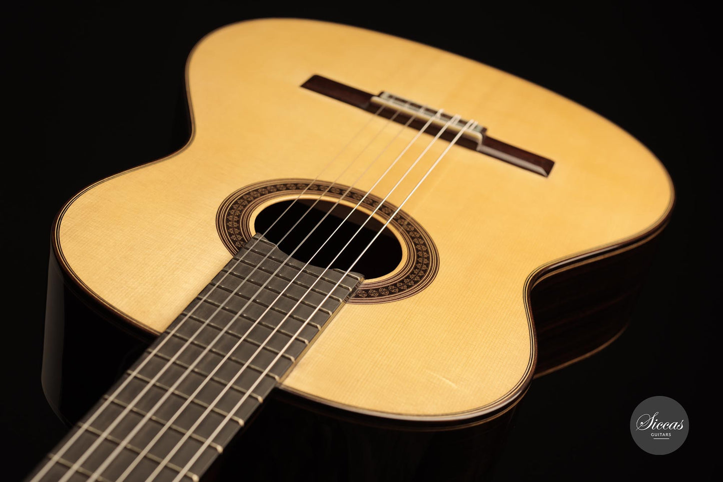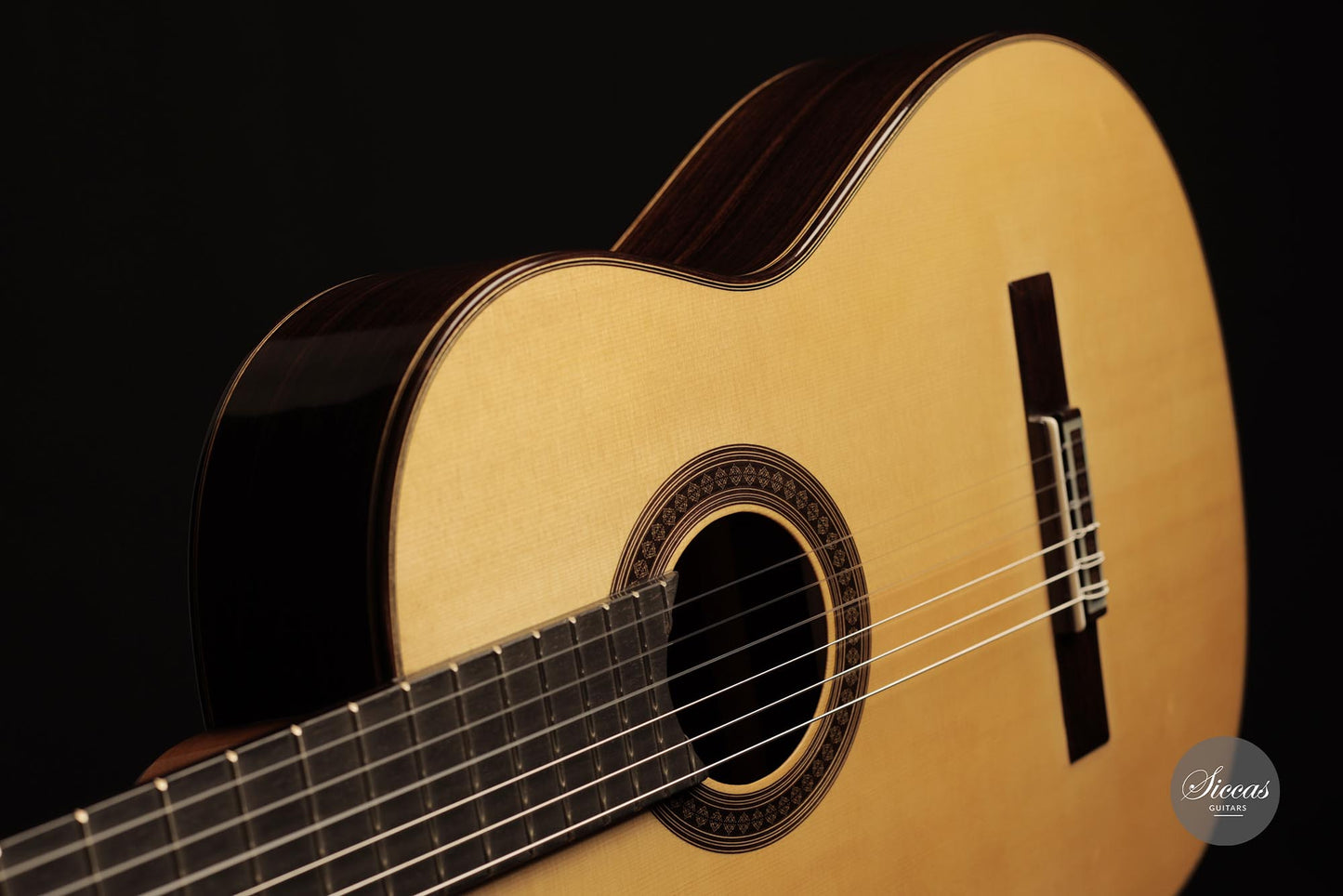 This beautiful 2020 classical guitar in spruce / Indian rosewood is brand new and bears the number 270. What an easy to play and rich sounding guitar. The trebles have a rather lucid coppery sound with a great sustain and its sound-colour ranges from mellow and deep to pinpoint and crystal clear. This traditionally made Gonzalez Lopez guitar has great dynamic possibilities, which are very easy to achieve and very inspiring for any passionate guitarist.